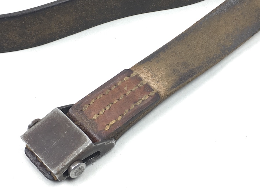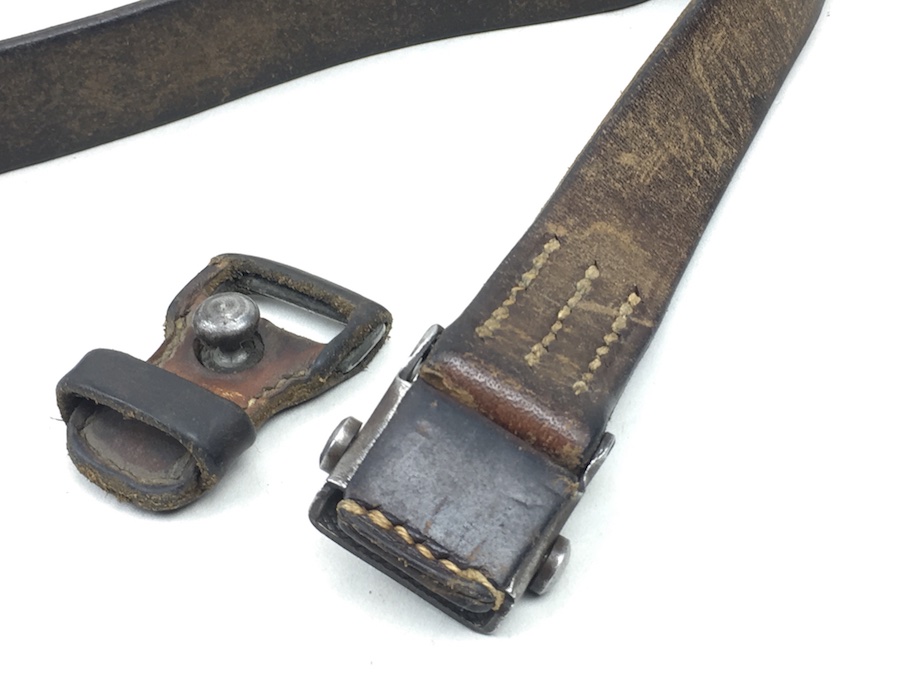 8/20/19 – This is an original leather strap for a K98 rifle manufactured early WWII. The strap is maker stamped and dated 1939 on the rear of the keeper stud, however, the maker code is visible but un-readable. The leather is soft and completely in tact with some age cracks, but it is strong and usable. Smooth surface on the exterior. The stitching is all original as well without issues. Guaranteed original.