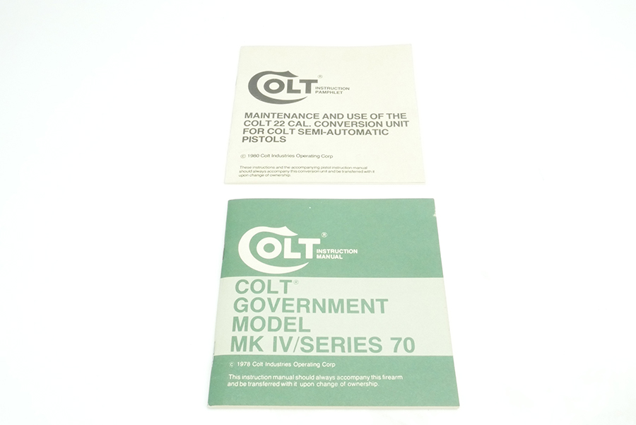 5/30/24 – This is a .22 Caliber Conversion Unit for a Colt Government Model, circa 1970’s (the manual is dated 1978). It comes with its original box, foam insert, owners manual, slide, barrel, ejector, slide stop, and magazine. Mint condition with a mint bore. The box and foam insert are very tattered.