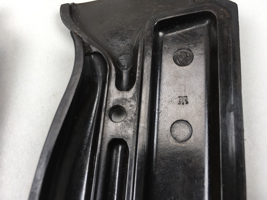 8/12/19 – Price is for one panel. These are original Walther P.38, left grip panels. The grips are Walther eagle 359 proof stamped on the interior of each panel. All are un-cut (not Russian cut). These are excellent, all original grips. There are no flaws on these grips.