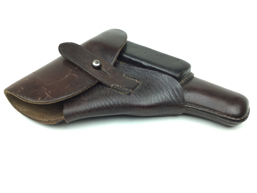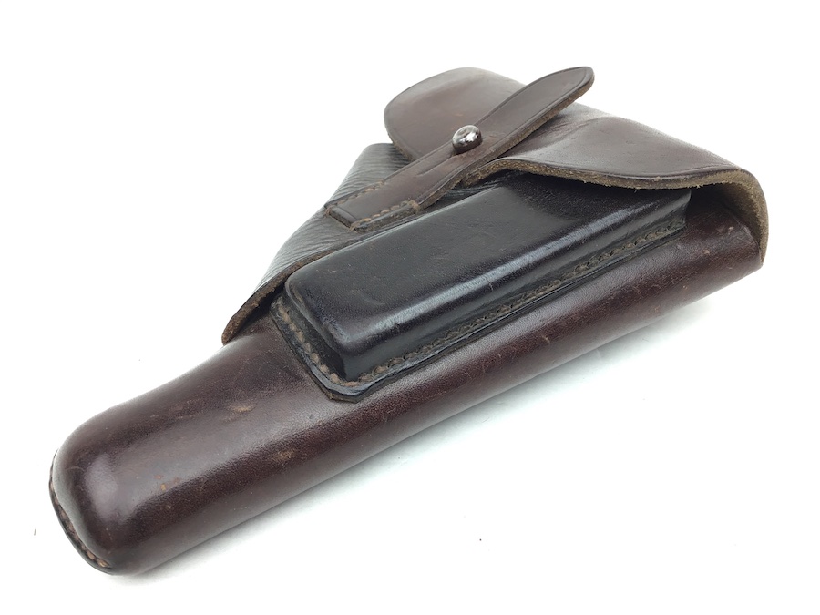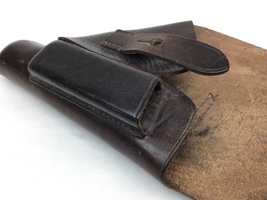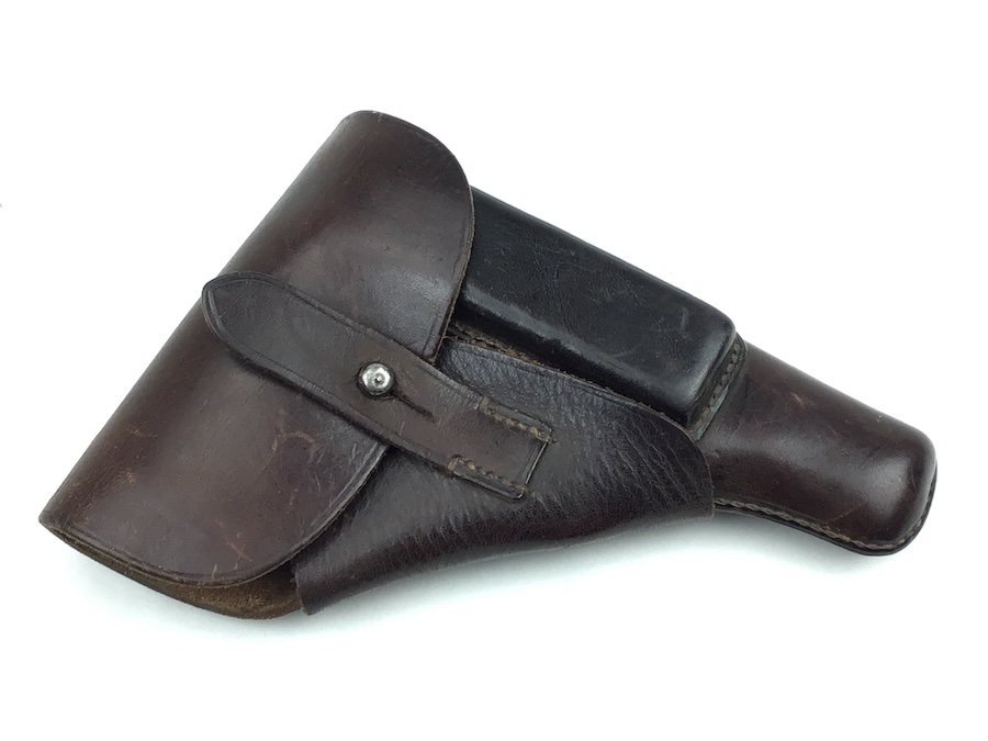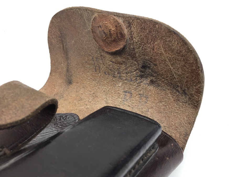 3/12/20 – This is an original and excellent condition AKAH Walther PP holster. The holster has minimal surface wear. The leather and stitching are completely intact. There is an AKAH maker stamp under the front strap. The Walther PP ink stamp is faint but visible on the interior leather. Guaranteed original and authentic.