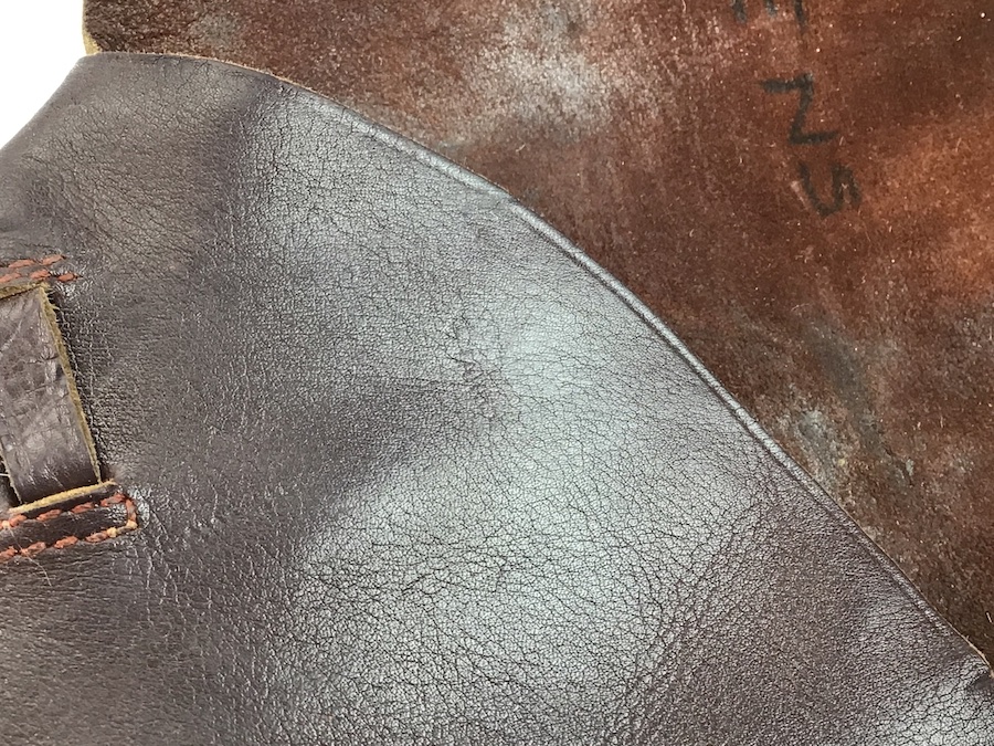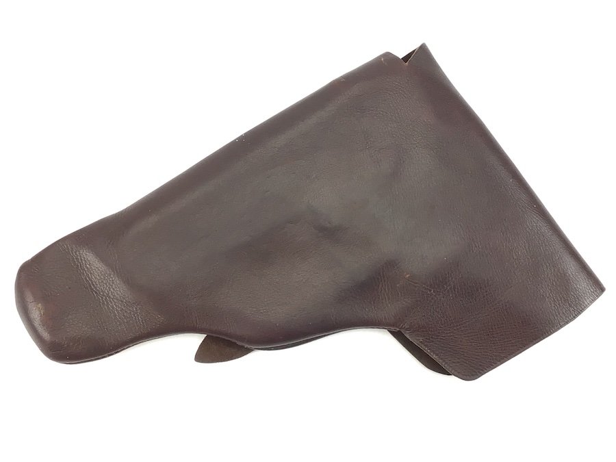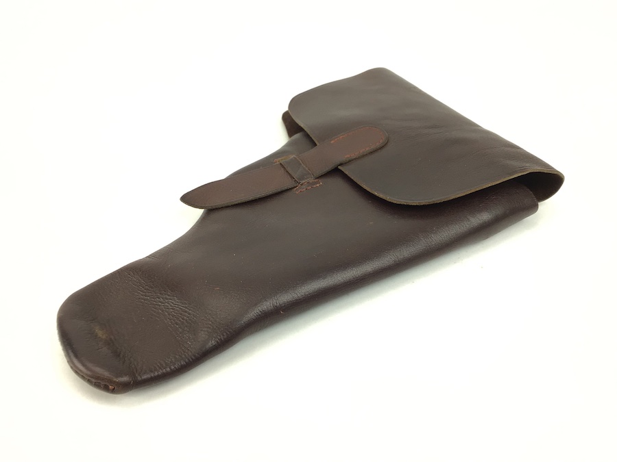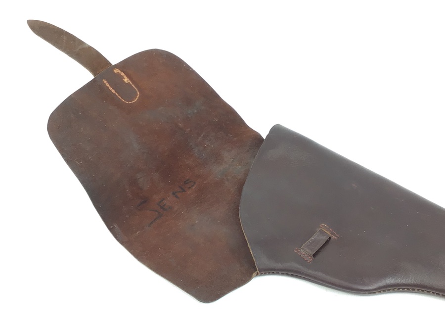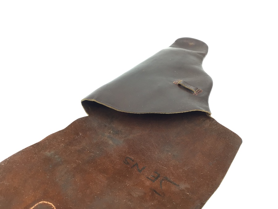6/17/21 – Original and great condition. Pouch / Holster for a Walther PP. Maker stamped “AKAH” under the closure flap. It is faint, but visible. Clean interior with intact stitching. Personalized under the flap “JENS”.