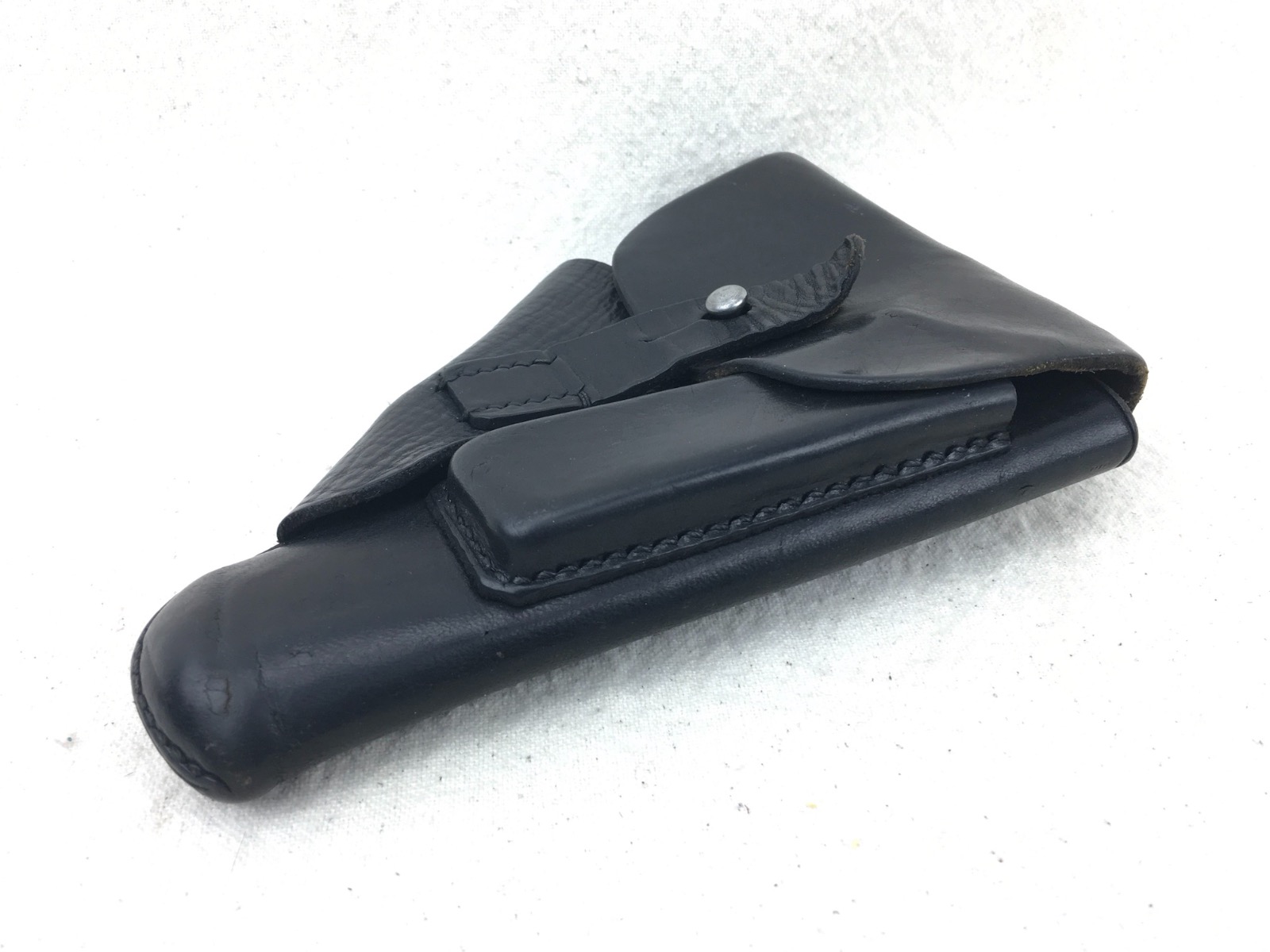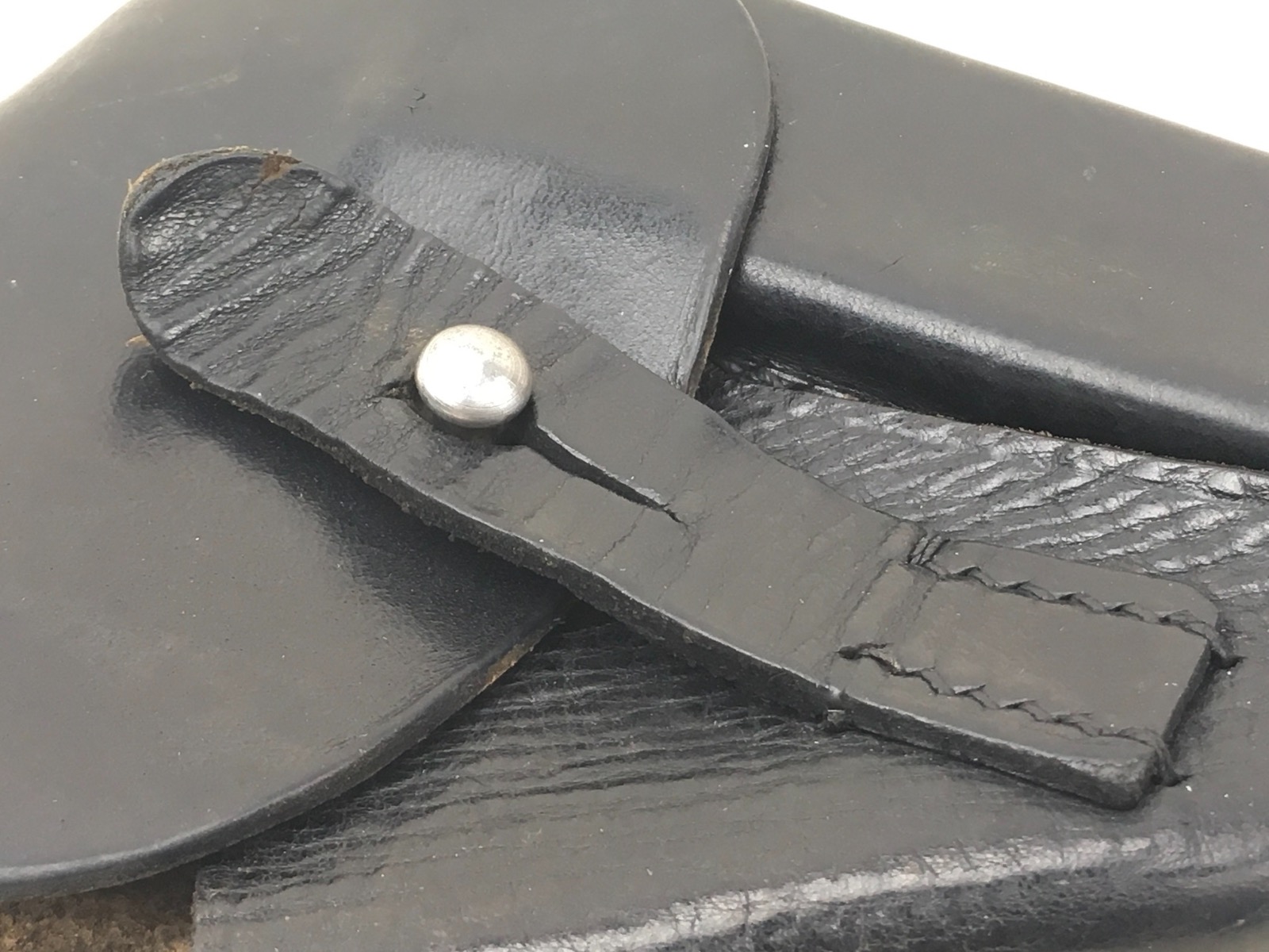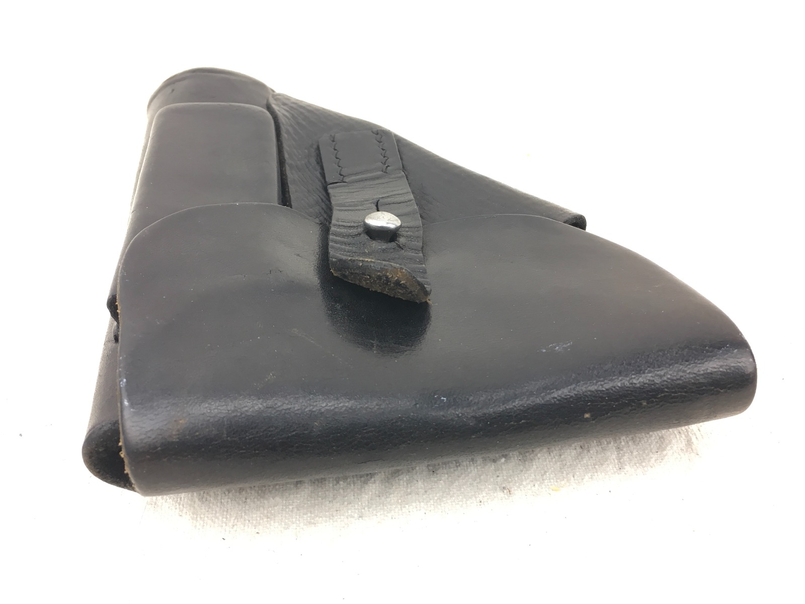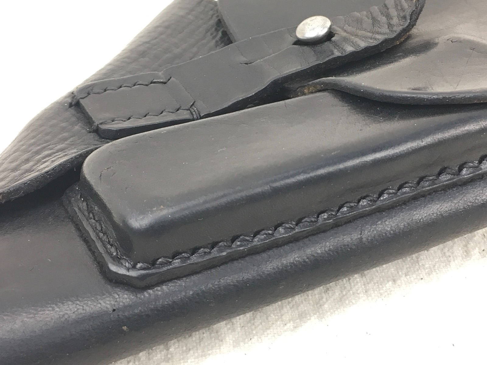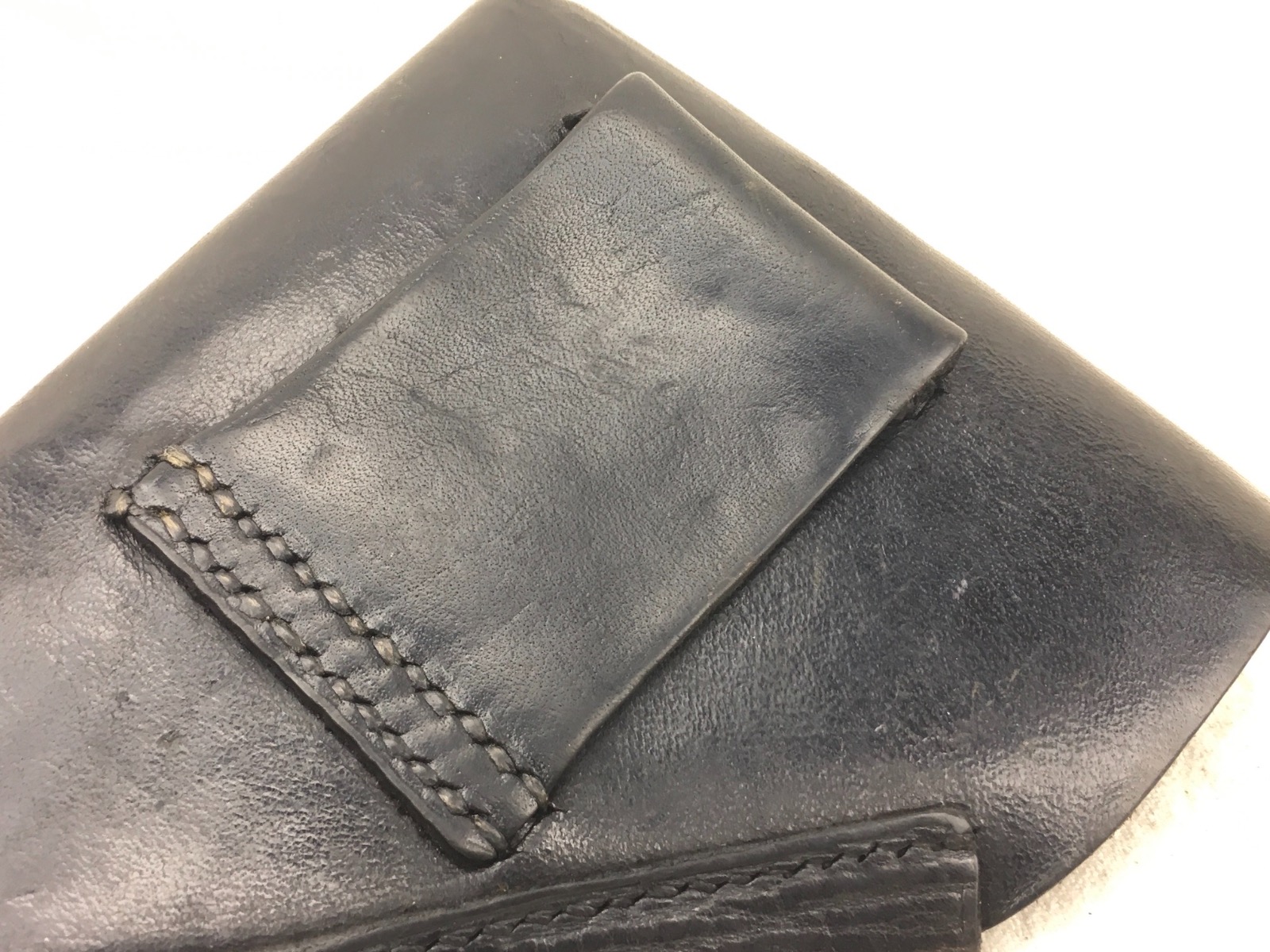 11/16/18 – This is an original AKAH Walther PPK holster from WW2. The holster is AKAH DRGM maker stamped under the closure strap. The black leather is strong and fairly firm with no notable flaws. The stitching is all tight and original with no stitching flaws. Overall a great collectible-grade holster. The interior leather is fairly clean. Guaranteed original – appropriate for wartime production PPKs.