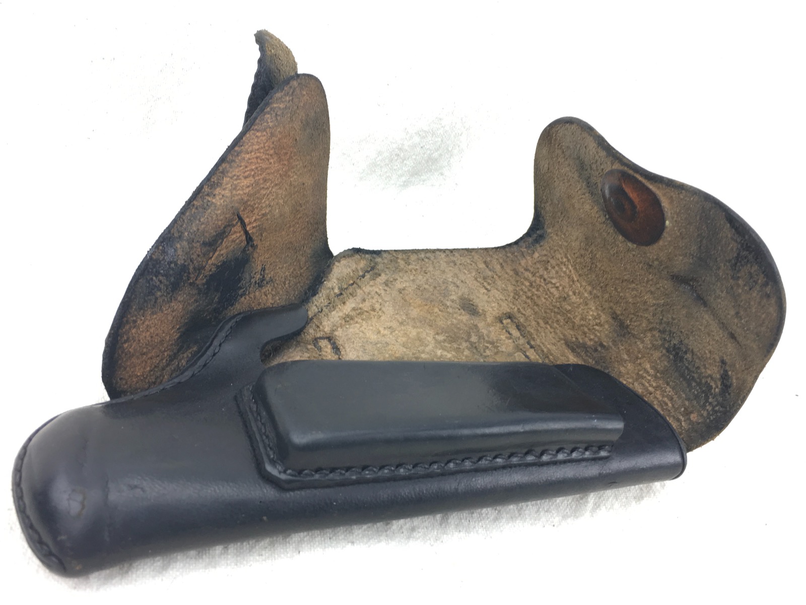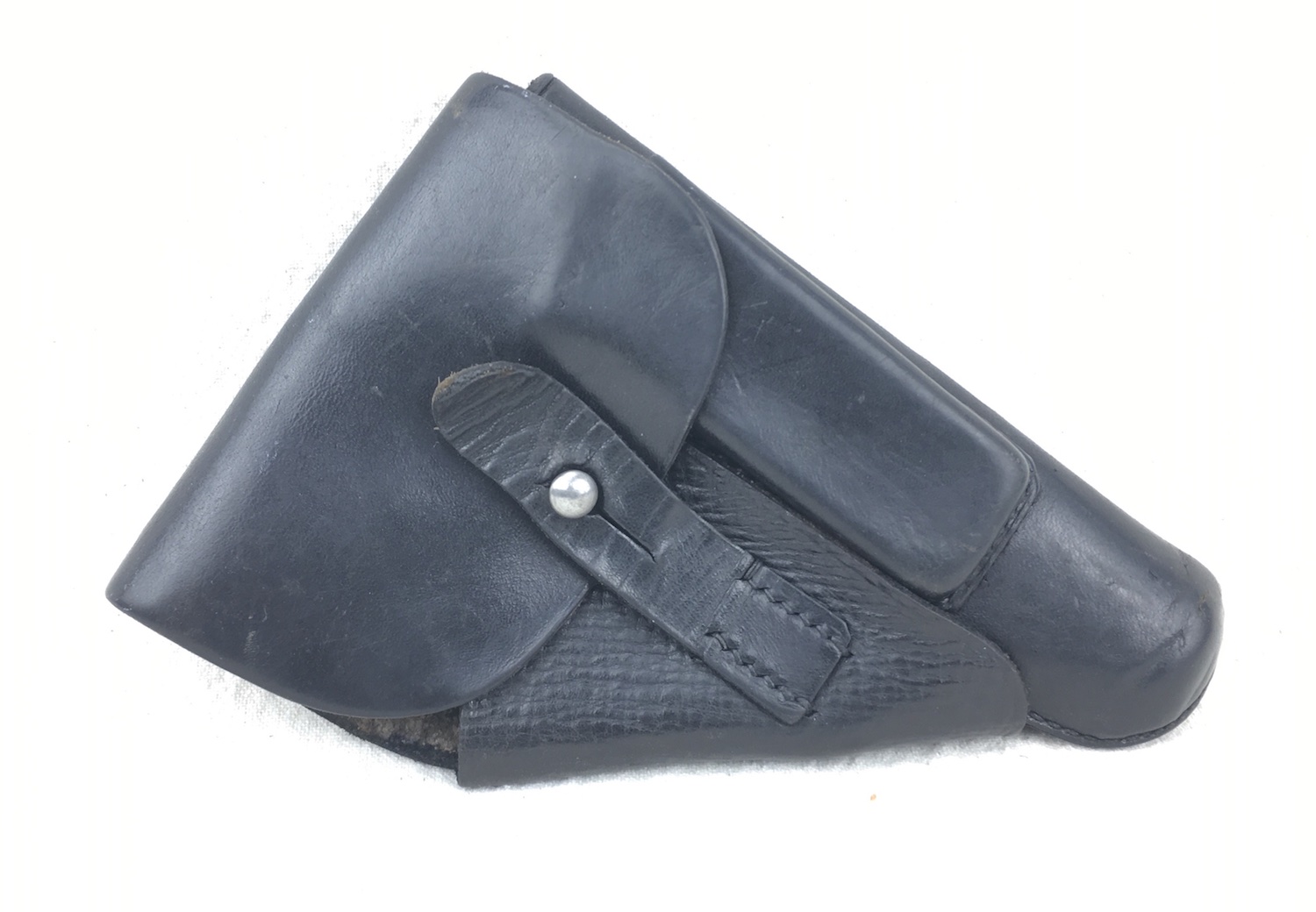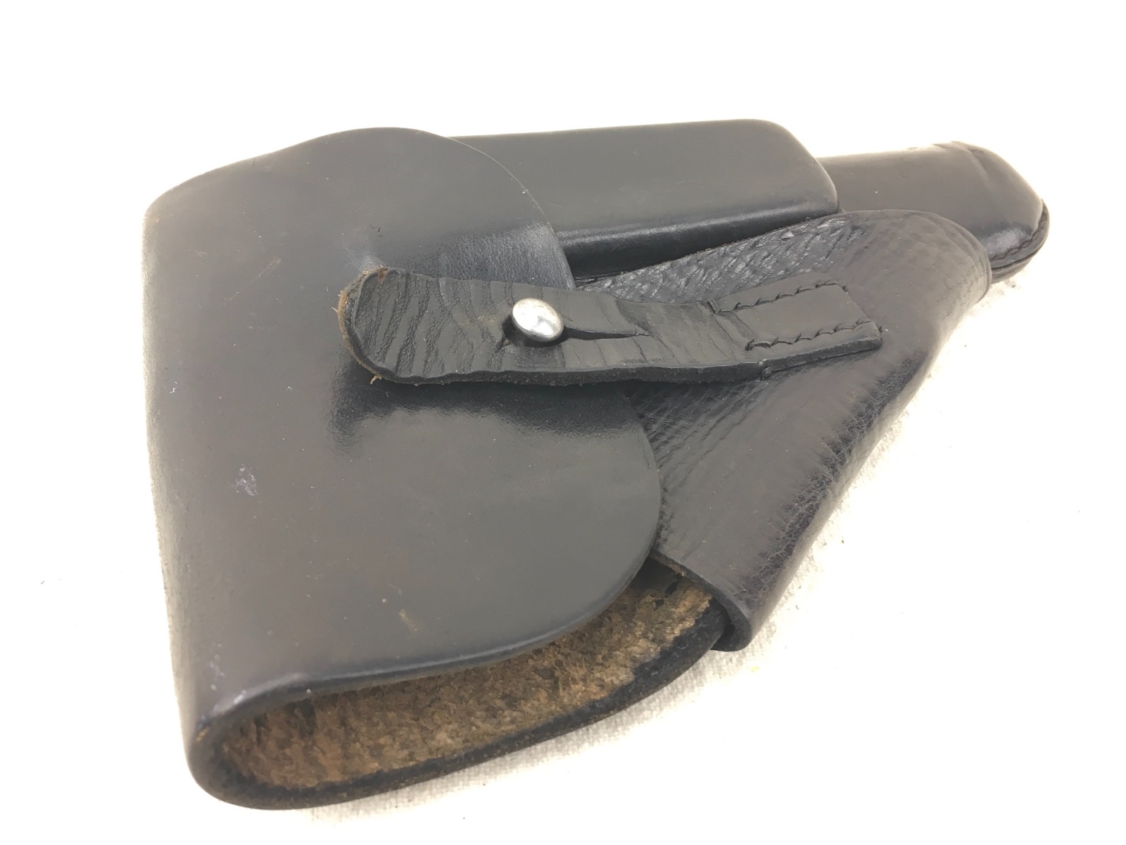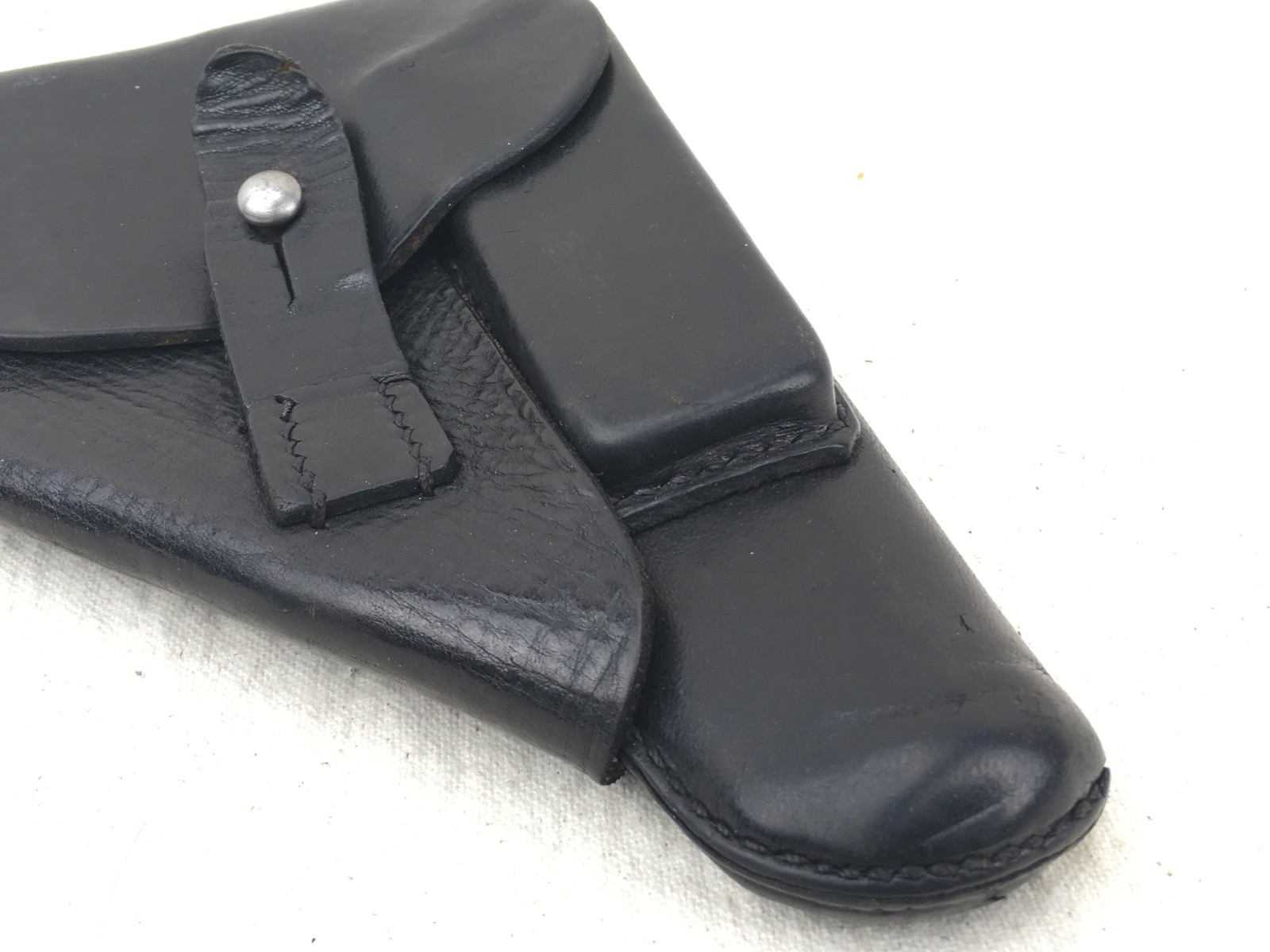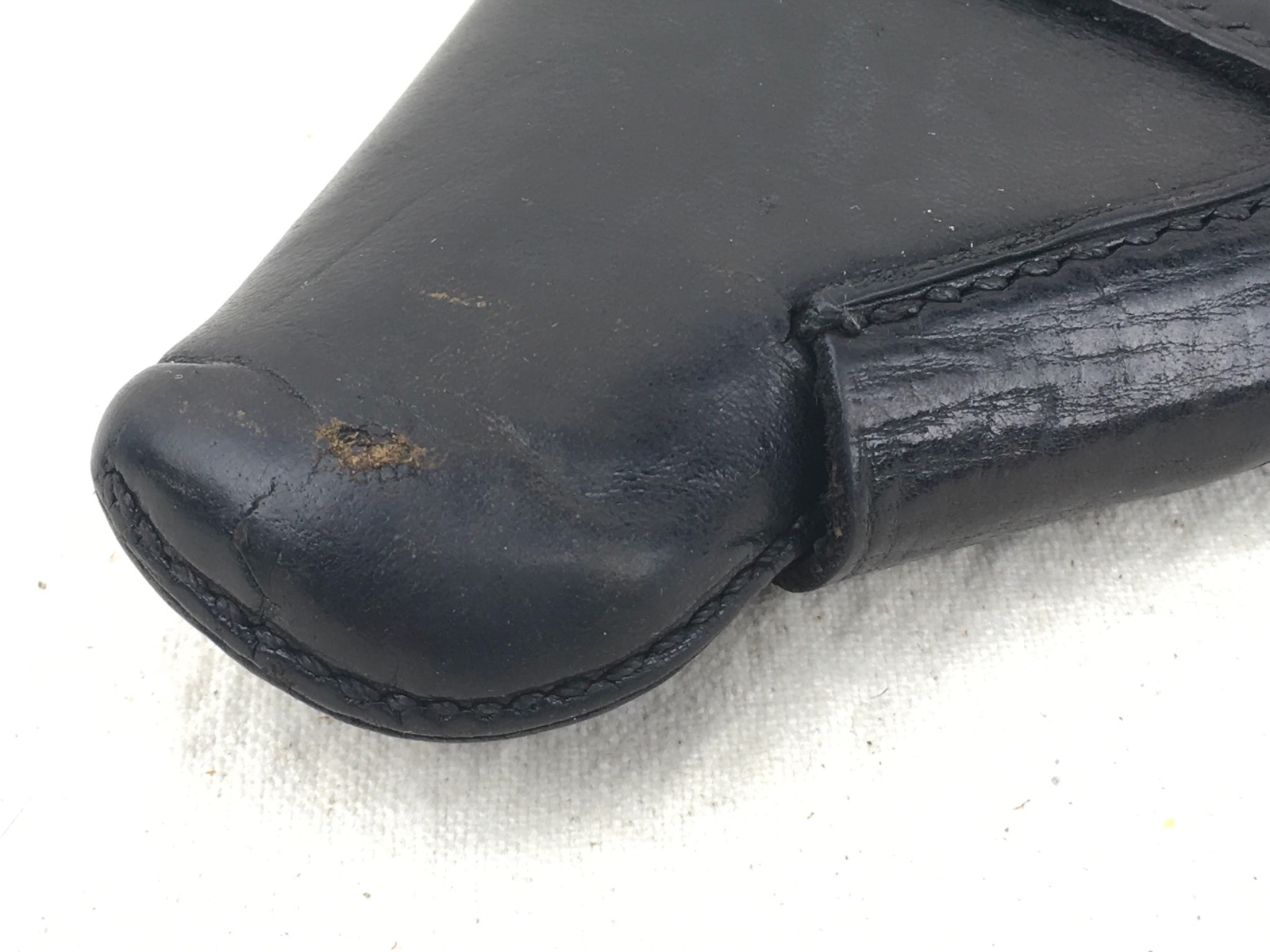 11/16/18 – This is an original AKAH Walther PPK holster from WW2. The holster is AKAH DRGM maker stamped under the closure strap. The black leather is strong and fairly firm with no notable flaws. The stitching is all tight and original with no stitching flaws. Overall a great collectible-grade holster. The interior leather is fairly clean. Guaranteed original – appropriate for wartime production PPKs.