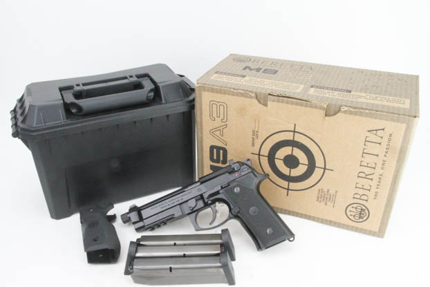 7/17/24 – This is a mint Beretta M9A3 in the original box. Threaded barrel. More info is linked below, but the pistol appears to be in nearly unfired condition, with black finish and controls. It comes with the original shipping box, as well as the carry/storage case that is designed to look like an ammo tin. Two spare magazines, spare grip panels, manuals, etc – all included.