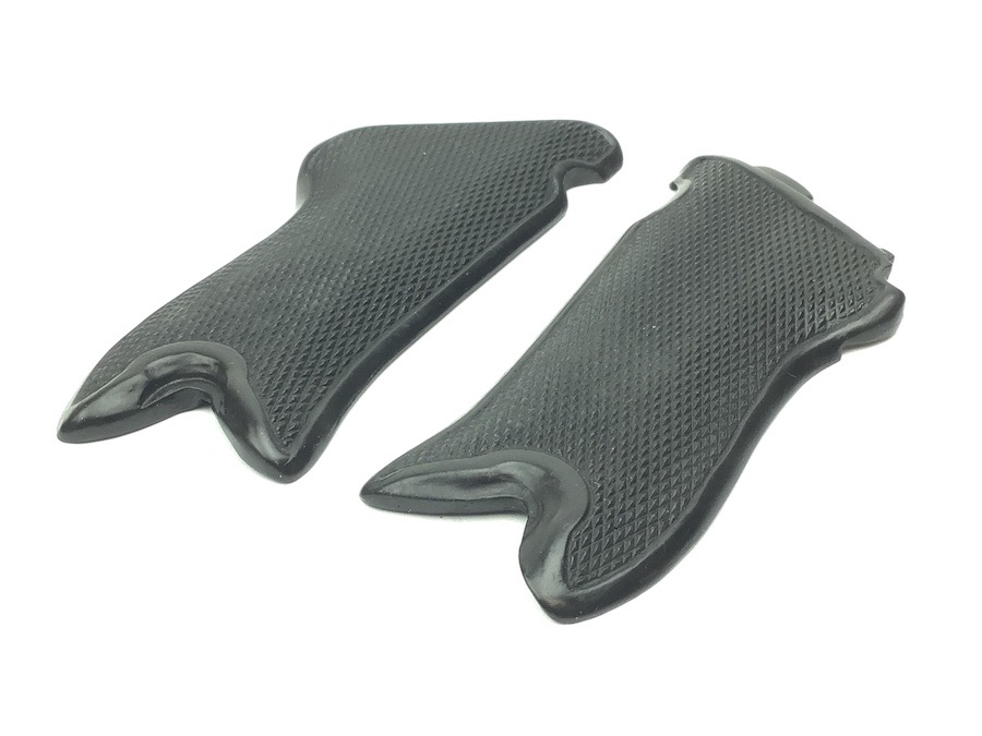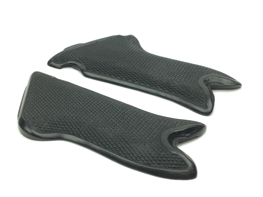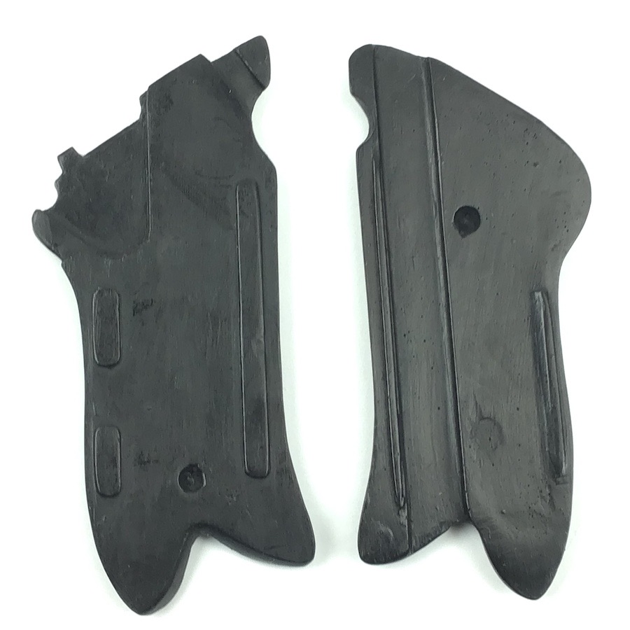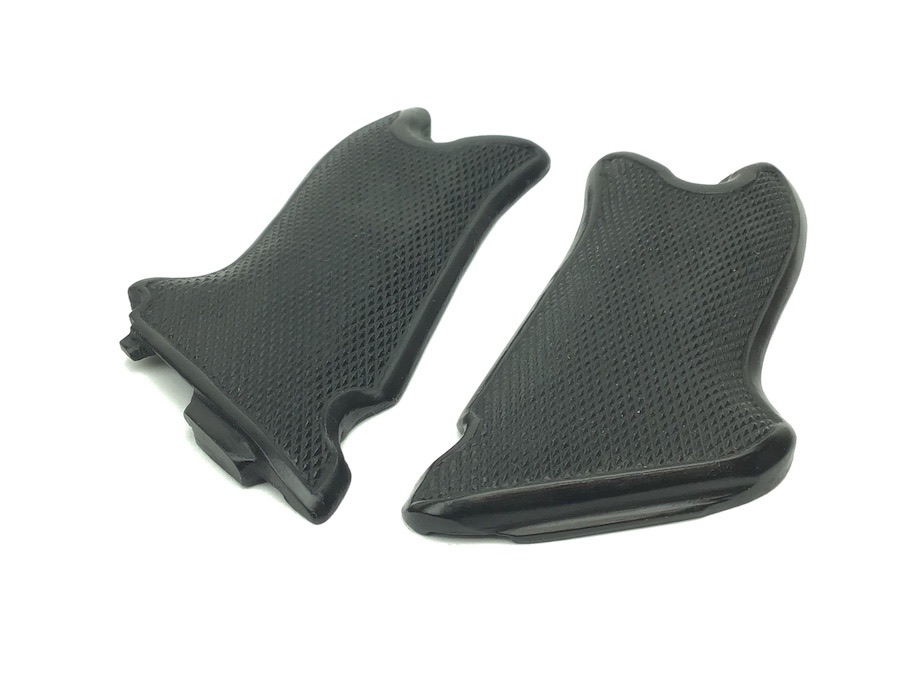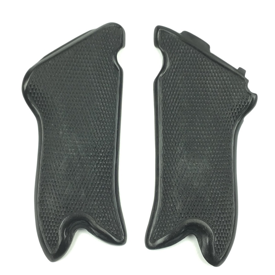 3/1/22 – This is a high quality, collector “place holder” pair of Black Widow grips. These are some of the best reproduction grips we have seen. Made for the “Black Widow” Luger. The texture, fit and appearance are nearly exact. Great checkering. No chips or cracks. They even have the distinctive bakelite “click” when tapped together.