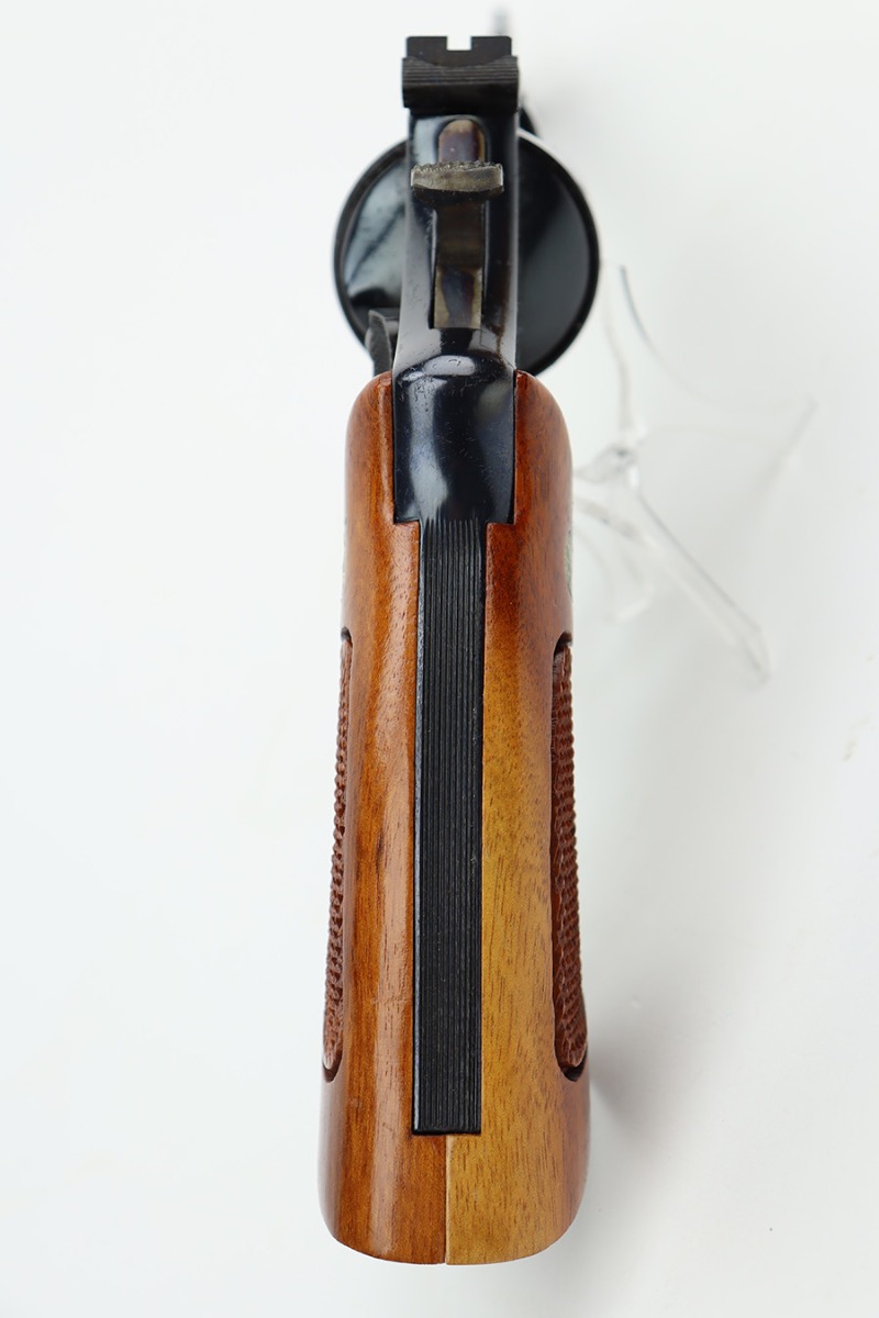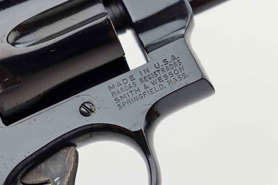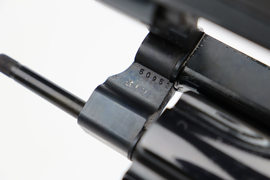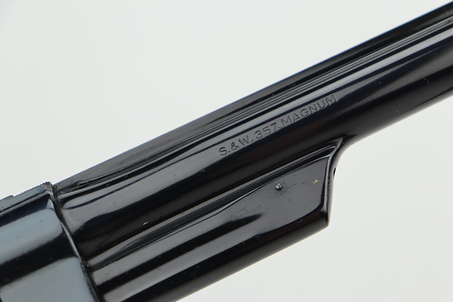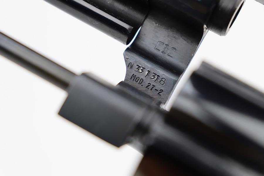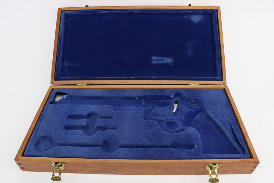 3/11/24 – This is a mint, cased Smith & Wesson 27-2 revolver from 1976. Barrel is 8.25in with mint bore. Hardly even a turn line on the cylinder, with no other finish loss and beautiful case hardening on hammer and trigger. Terrific wood grips. Original case with the manual, cleaning rod and brushes. FFL required.