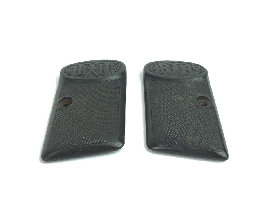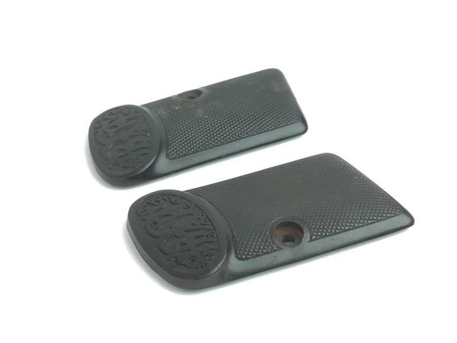 7/22/24 – Original and great condition. Dreyse Model 1908 grip panels. Distinct diamond pattern and Dreyse logo. No cracks or chips.