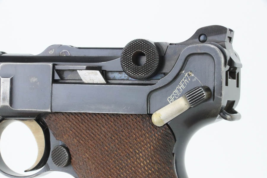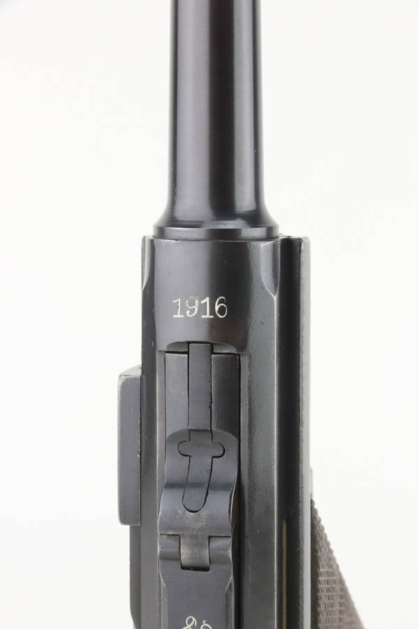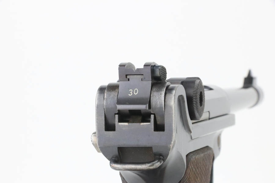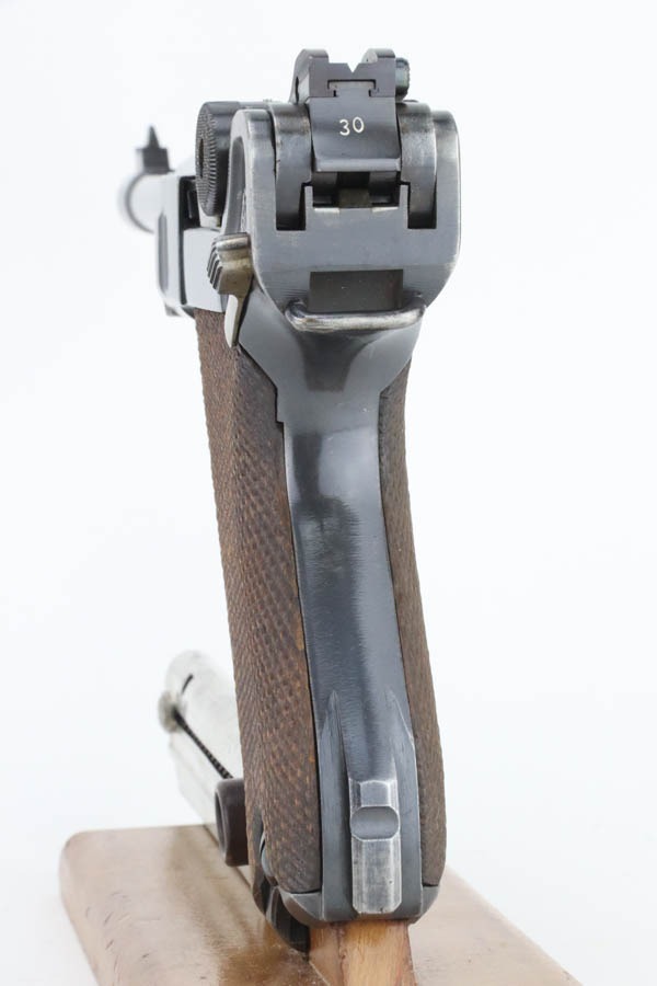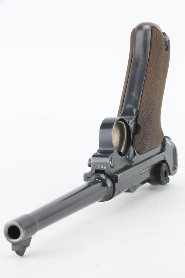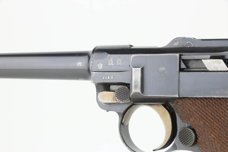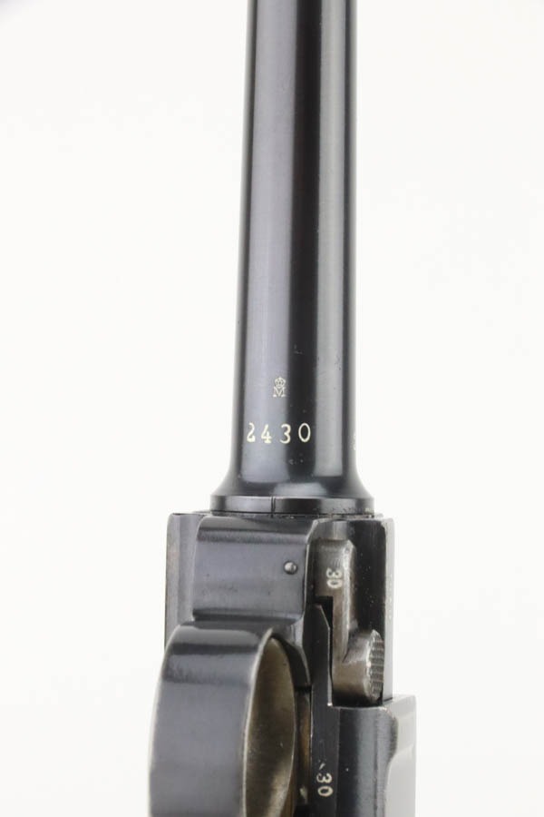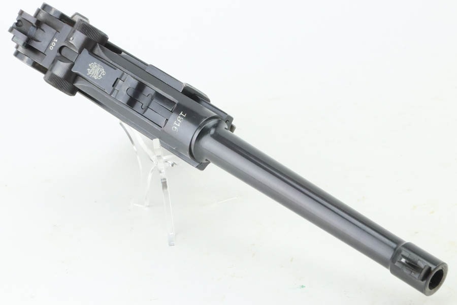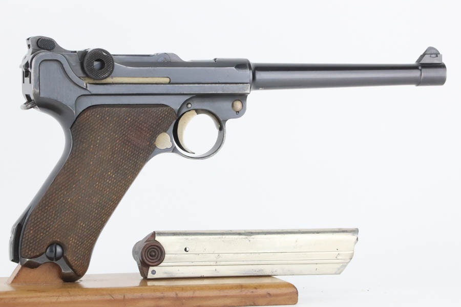 12/2/24 – This is a 1916 DWM Imperial Luger “fantasy piece”, meaning it was put together, marked, force-matched, and made to look like an original Navy Luger. This is expert work and not easily distinguished from the originals. In any case, it is all matching and has retained about 95% of its bluing. Minor wear on the grip straps and very minor high edge wear. Comes with a force-matched magazine. Minty grips. Mint bore.