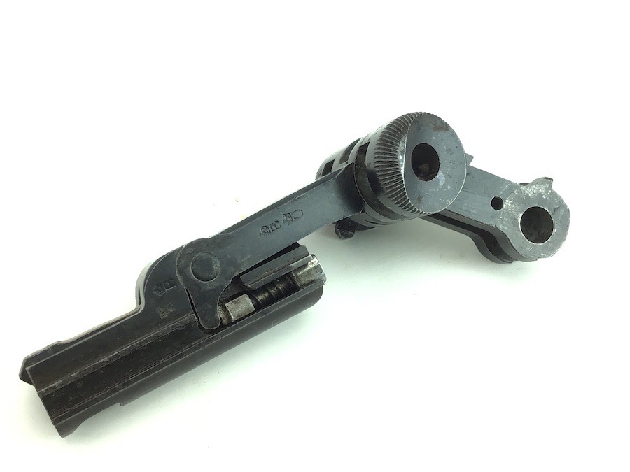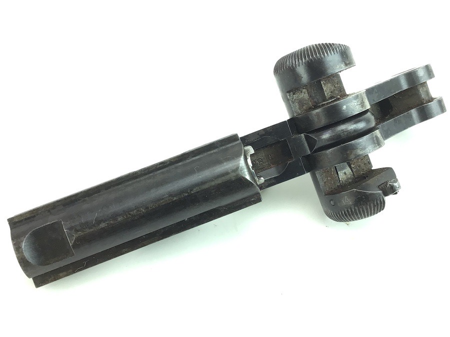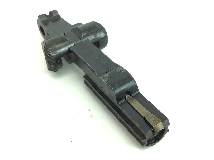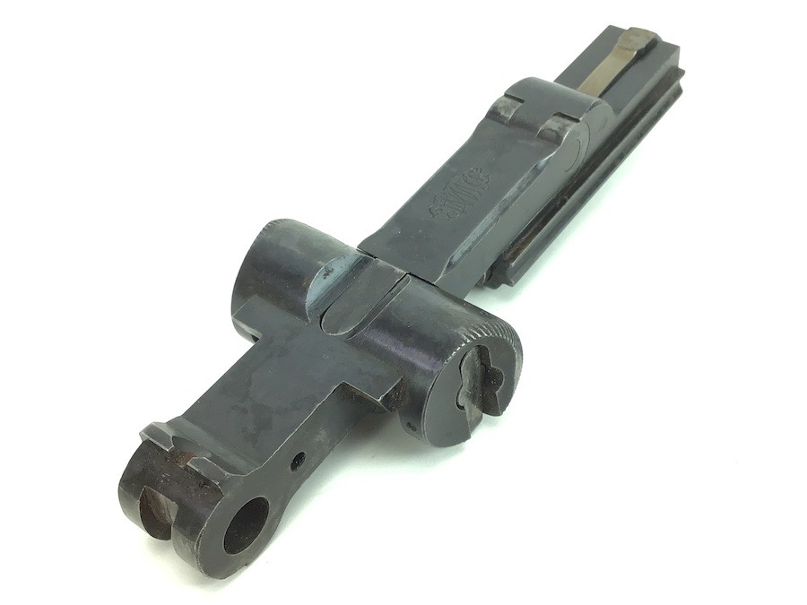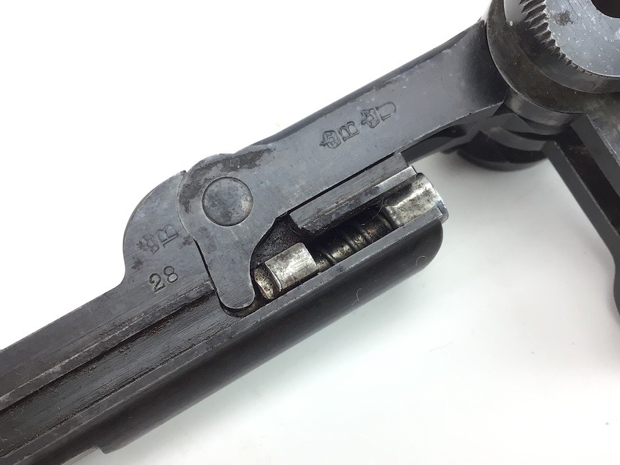 4/30/24 – This is a complete, authentic, DWM, Dish Toggle Assembly for a pre WWI era Luger. #28 stamped on the left side of the breach block along with a Crown B and Crown U imperial stamps. The firing pin is un-fluted and un-numbered. Bluing is 98% and all pieces function properly.