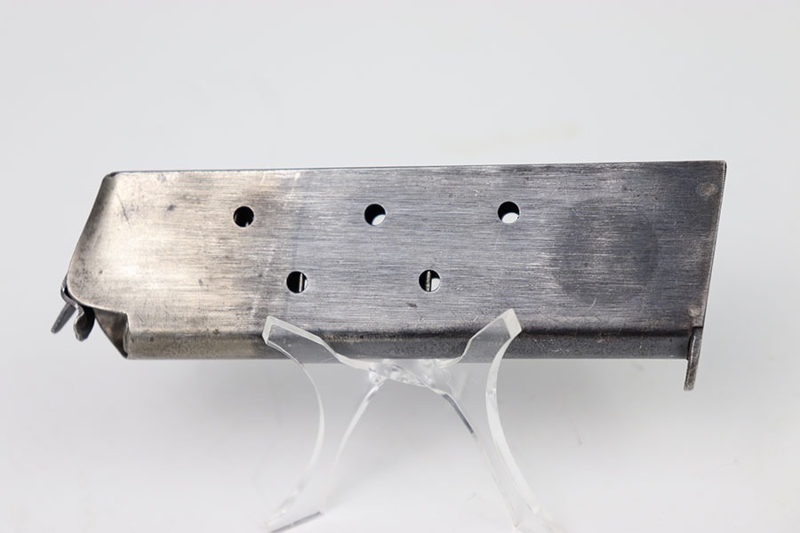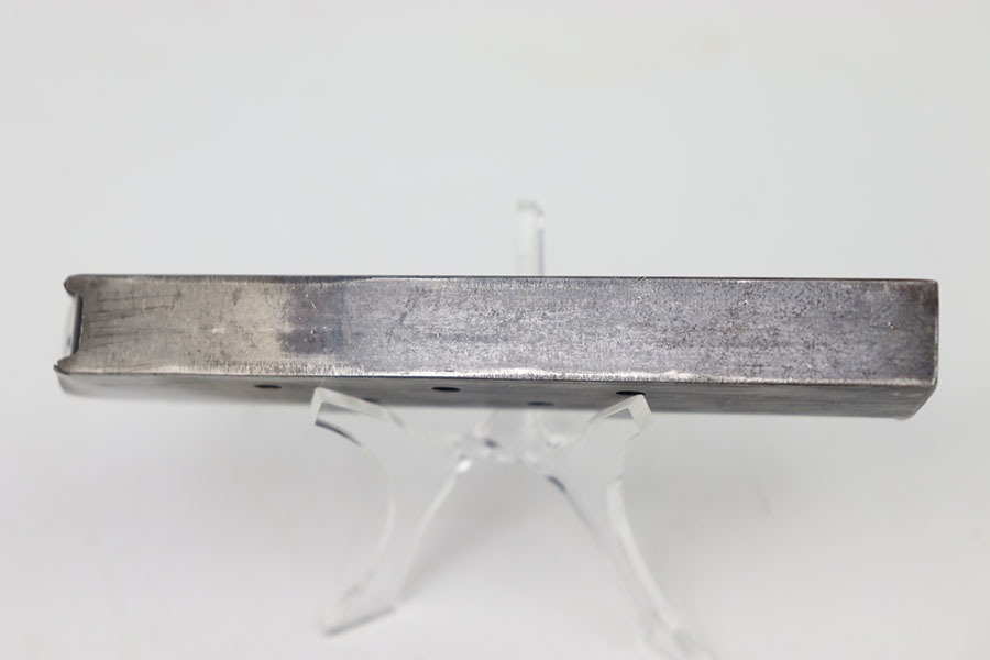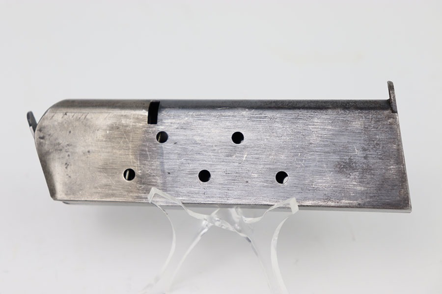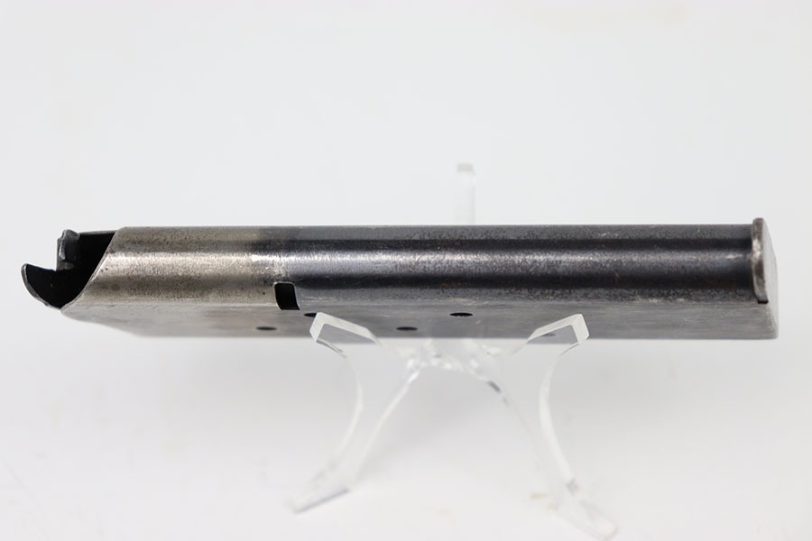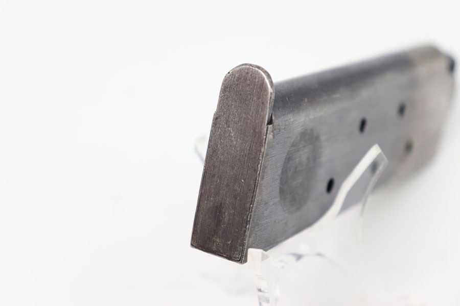 11/14/24 – This is an original Colt 1911 magazine from WW1. The magazine has a two-toned finish and is in excellent overall condition. There is some minor wear throughout the body of the magazine with a little patina towards the bottom of the right side. There is some residue left from a price-tag sticker, this can be cleaned off. The magazine has an excellent WW1 era two tone finish. The spring is strong and fully functional. No markings or stamps with typical Colt construction.