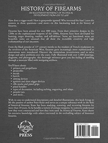 With its easy-to-understand descriptions and detailed illustrations, this book brings to life the passion of author Peter Kunz and serves as a unique reference work in the field of historical firearms. Kunz has been studying, restoring, and recreating firearms for more than 20 years. As he handles a variety of antique weapons, he comes to understand how they were constructed and how they were used. In History of Firearms, Kunz shares his extensive knowledge with others interested in the enthralling subject of historical firearms.