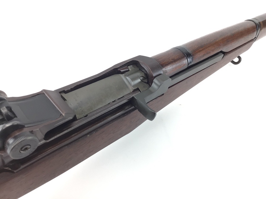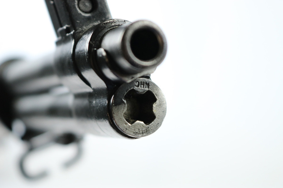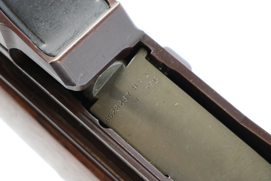 4/5/22 – This is an original Harrington & Richardson M1 Garand made during the first year of production. This rifle has scarce early production qualities, like some parts from Springfield and Winchester. When H&R first starting making Garand’s for the Korean War & Vietnam, they bought up as many parts as they could from other manufacturers to help speed up their initial production. This rifle fits that story. Further, what makes this rifle interesting is that it has British proofs on the topside of the barrel from our lend-lease program with the UK during the time. The rifle is in excellent condition overall with beautiful wood and a plumb colored metal receiver. The bore is in excellent condition as well with only trace signs of use. Overall a 9 out of 10. Includes post war manufactured canvas carry bag.