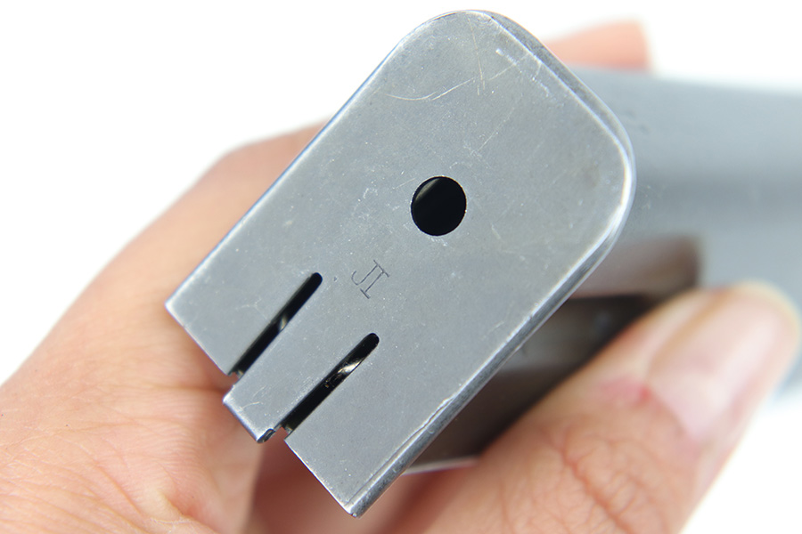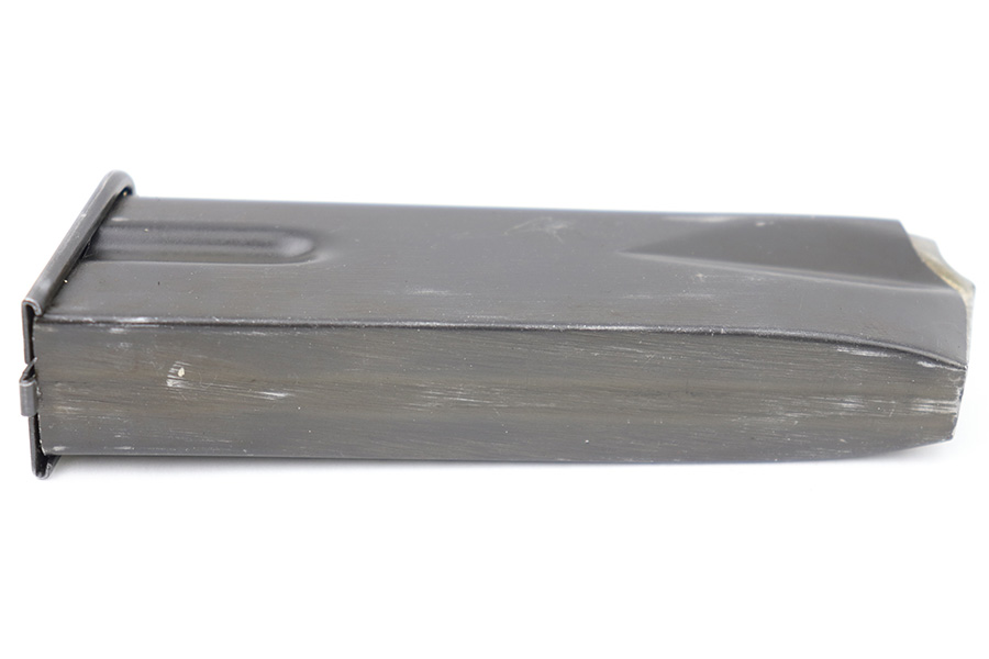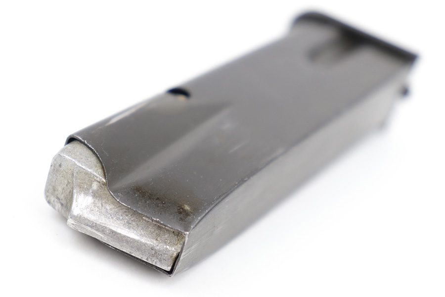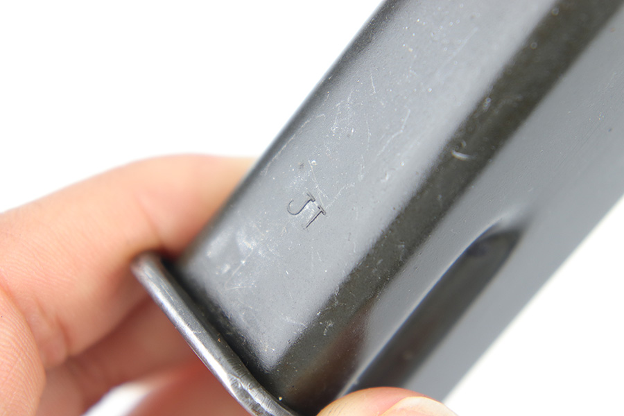 10/9/23 – This is an original WW2 production Inglis High Power Magazine. Stamped “JI” on the front spine and base. Excellent phosphate finish throughout with some mild thinning and surface wear, but no rust or pitting. The spring is strong and functional. Holds 14 rounds. We have multiple available, all in similar condition to the one shown in photos.