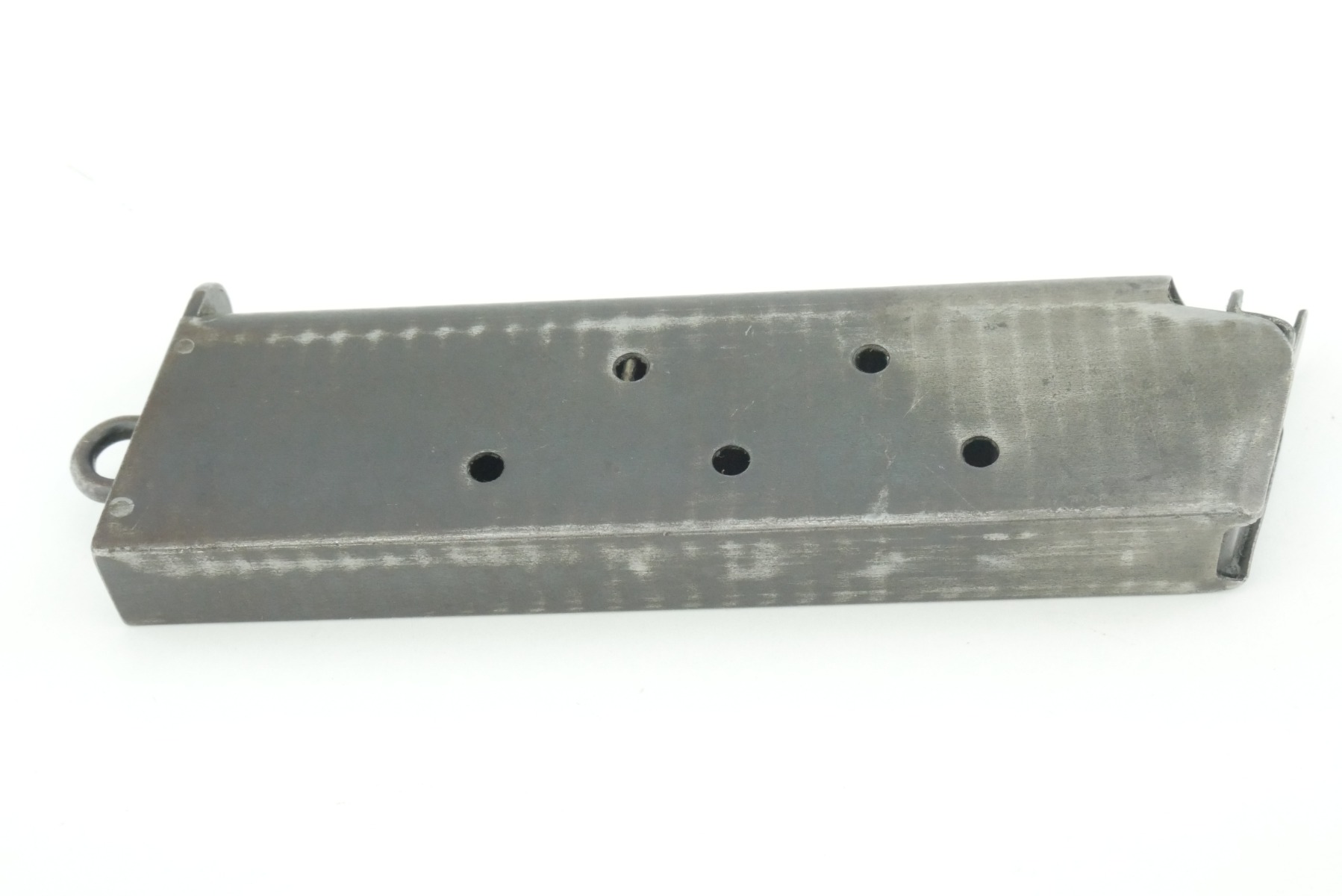 9/5/24 – This is an original WW1 era Colt model 1911 pistol magazine. This magazine does have a two-tone finish and a lanyard loop on the base, and has patina throughout. There are a couple areas that have light pitting, but nothing that effects the integrity and function of the magazine. The spring is still strong fully functional, and strong.