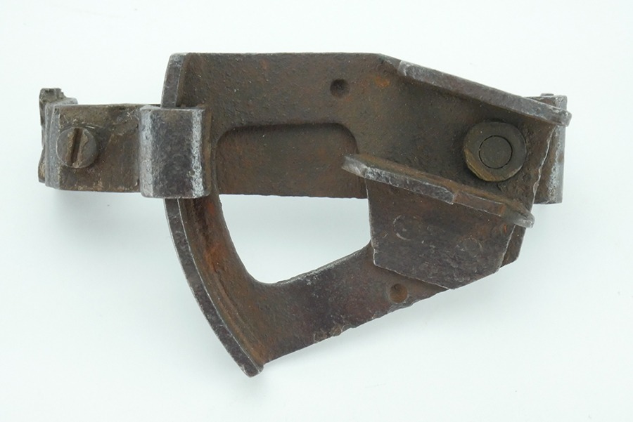 9/25/24 – This is a fair example of a Mannlicher M95 grenade launcher sight. This sight has oxidation and pitting throughout. Despite this pitting, the numbers on the sight itself are still legible. The elevation of the sight still functions and is easily adjustable, the windage adjustment is frozen from oxidation.