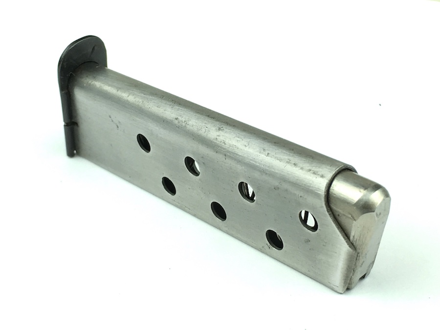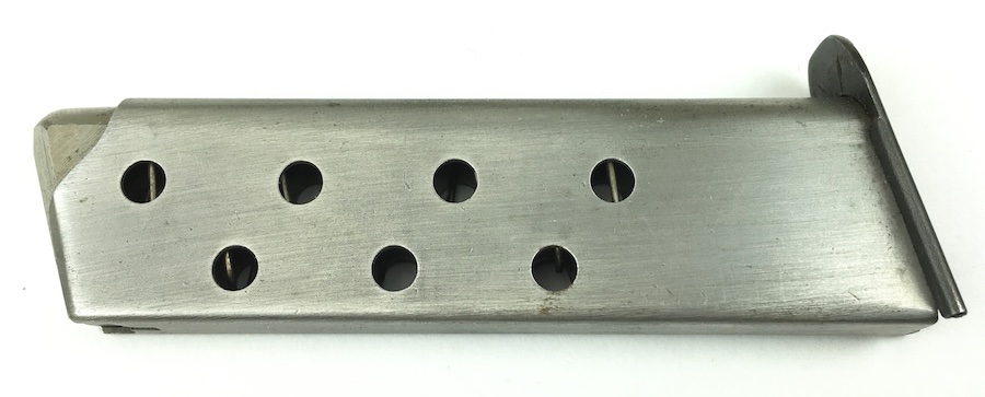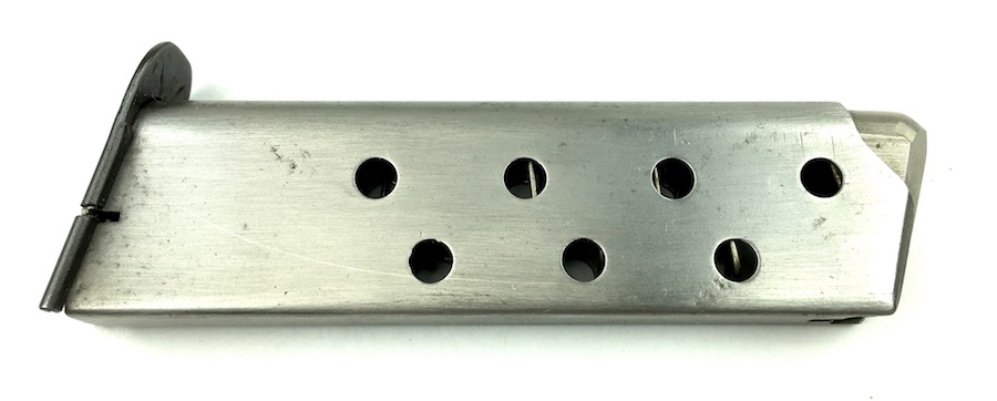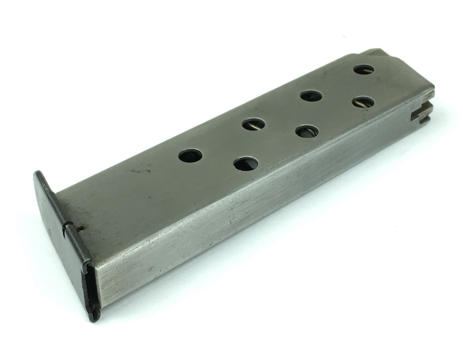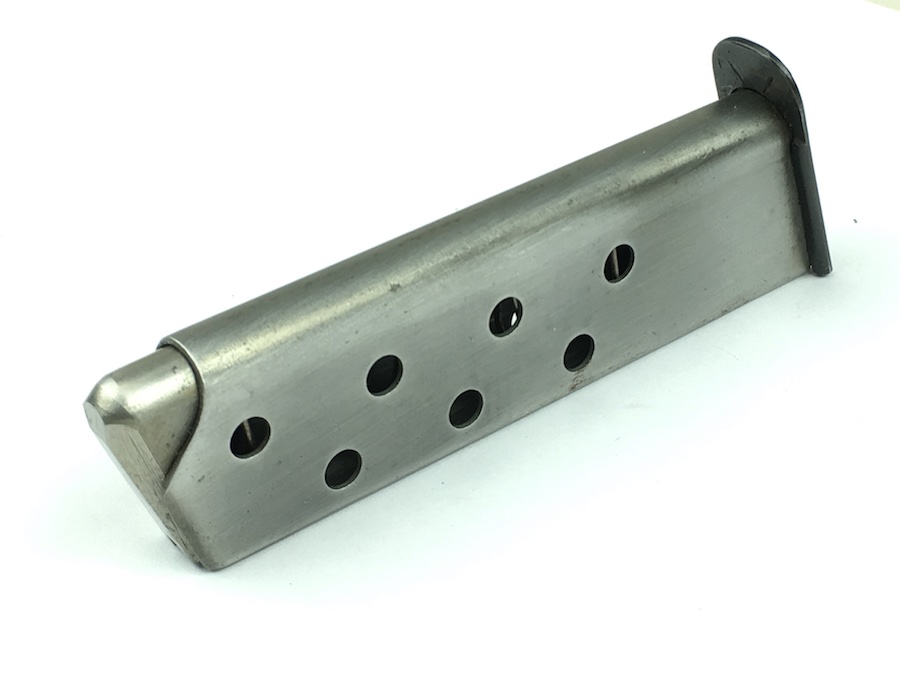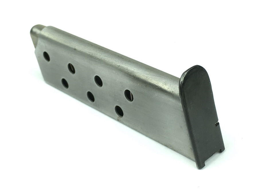 9/17/19 – This is an original, mid WW2 era Mauser model HSc magazine. The base of the magazine is correct for a wartime production Mauser HSC. The base is high polish blued with no stamps or imprints. The phosphate tube of the magazine is excellent with no rust or pitting. The follower is strong and fully functional. Guaranteed original.