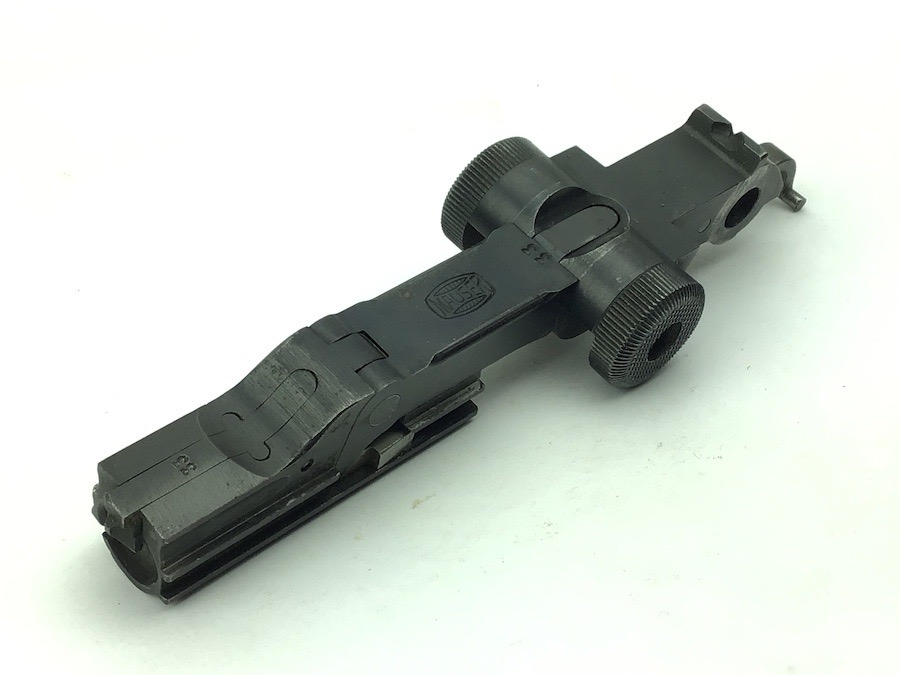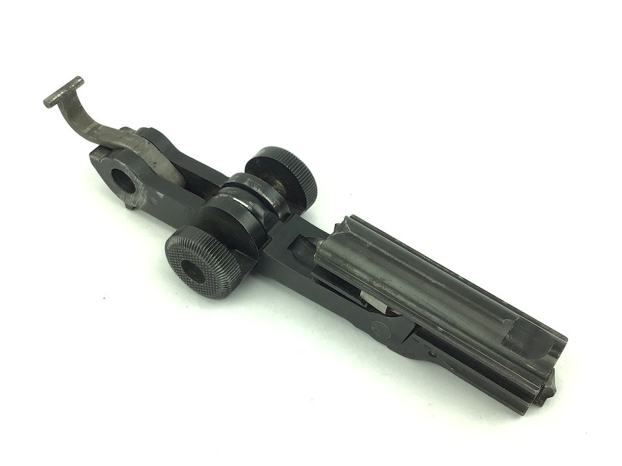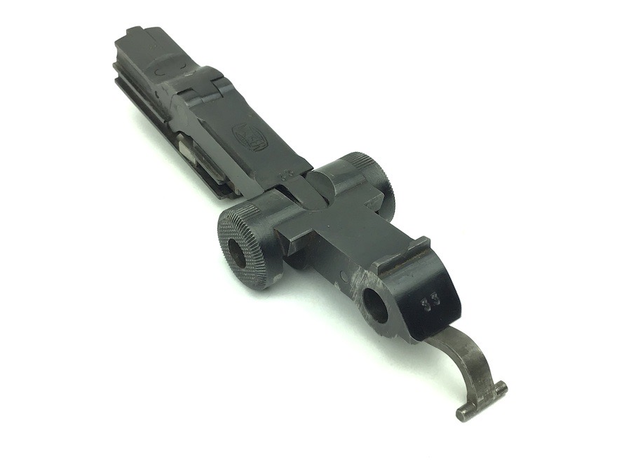 11/30/22 – This is a complete, authentic, numbers matching. (Number 33) Toggle Assembly for a Mauser, WWII era Luger. Bluing is 98% and all pieces function properly. Firing pin is fluted and numbers matching. Includes the breech block, extractor, springs, pins, firing pin and coupling link. Excellent piece.