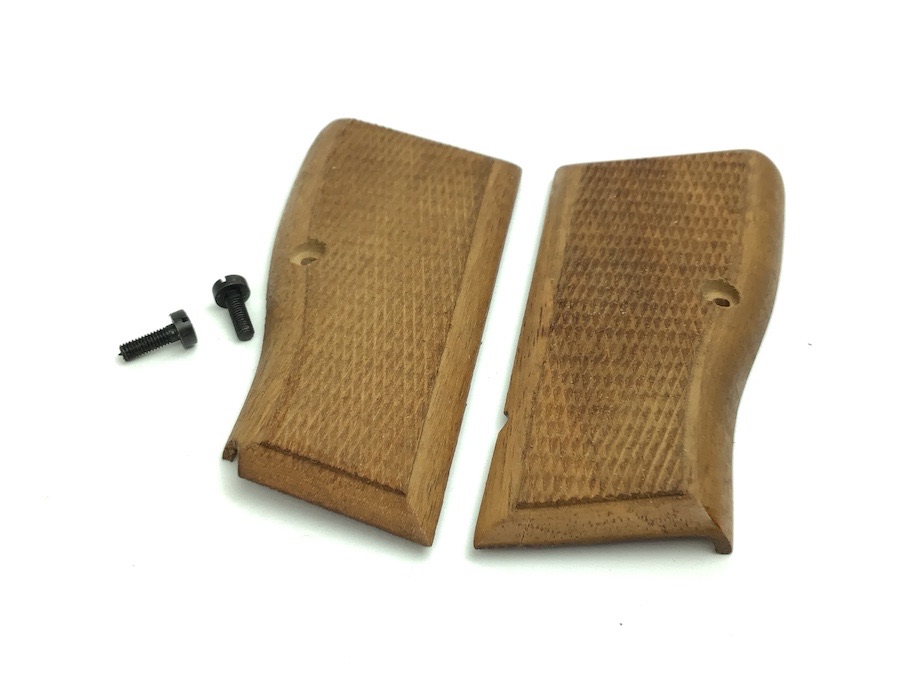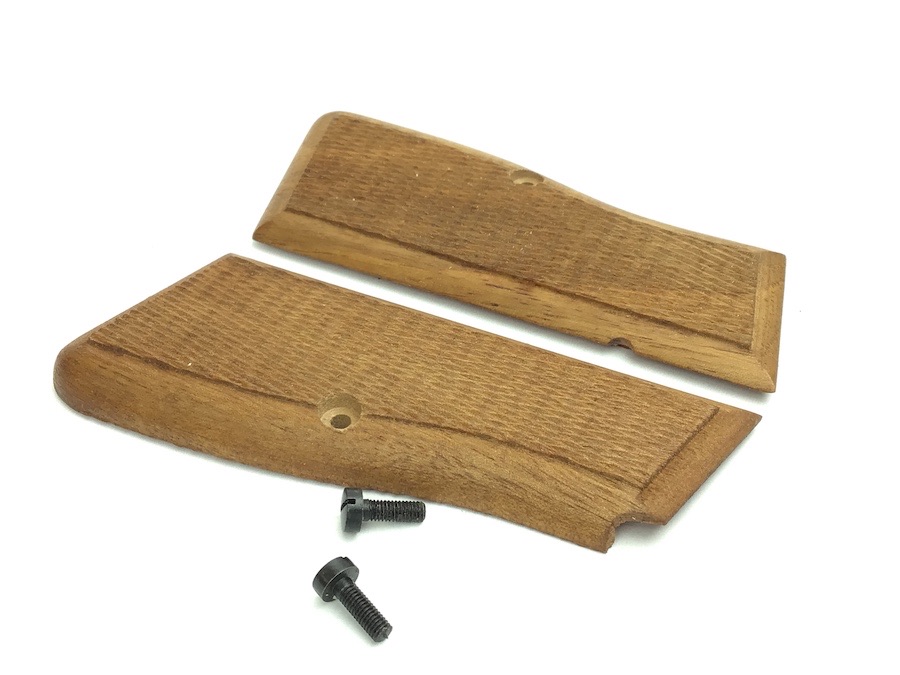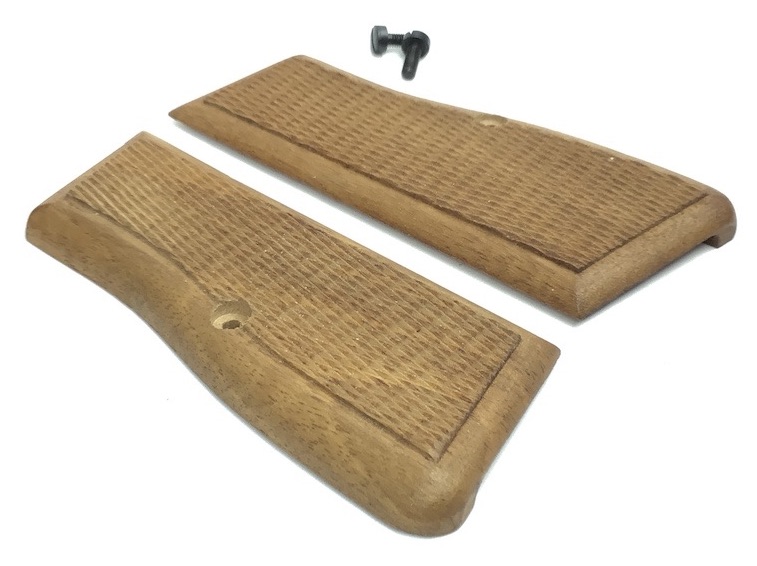 3/21/22 – Original and mint condition. Pre WW2, FN Browning High Power Wood Grip Panels and original screws. Factory originals painted red on the back. Unissued condition. Nearly impossible to upgrade.