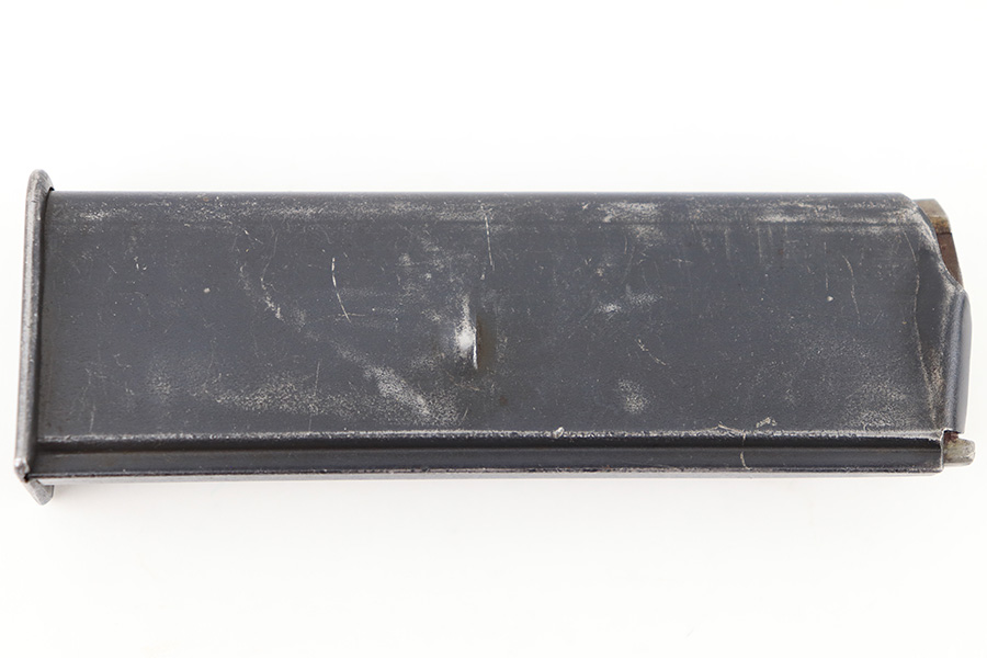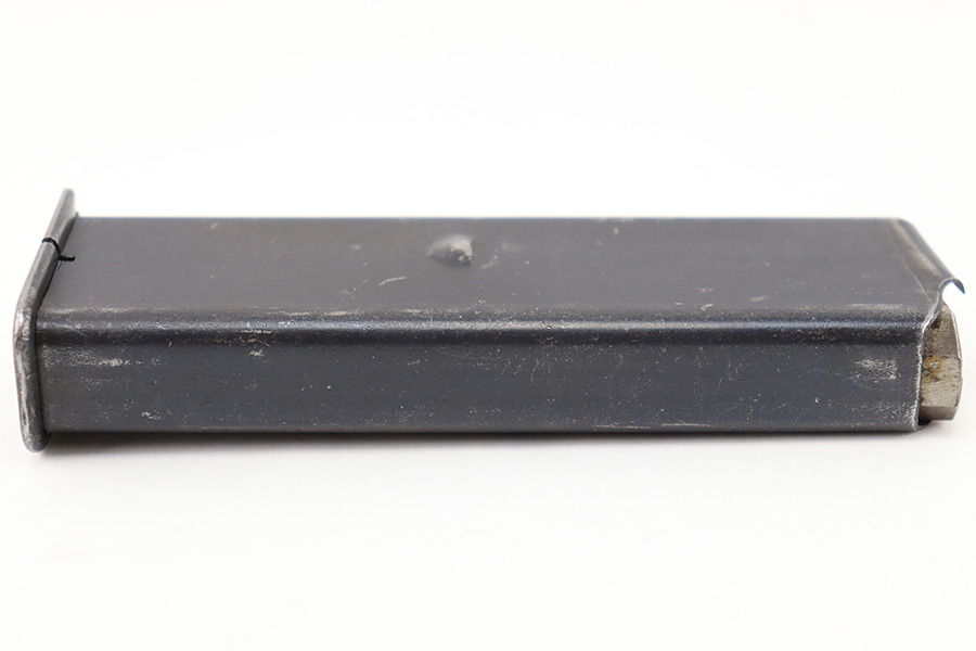 8/21/23 – This is a rare, early WW1 commercial Mauser M712 Schnellfeuer Pistol magazine. The magazine holds 20 rounds of 7.63mm ammunition. The original dull blued finish is in great shape throughout the magazine with some light areas of finish loss but no rust or pitting. Mauser stamped on the base, and no other markings. The spring is strong and fully functional.