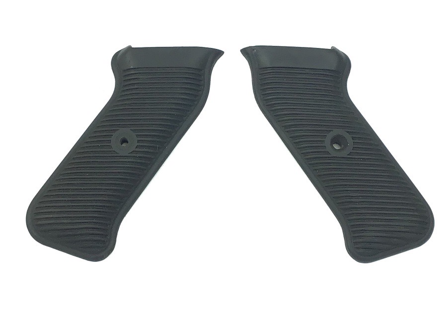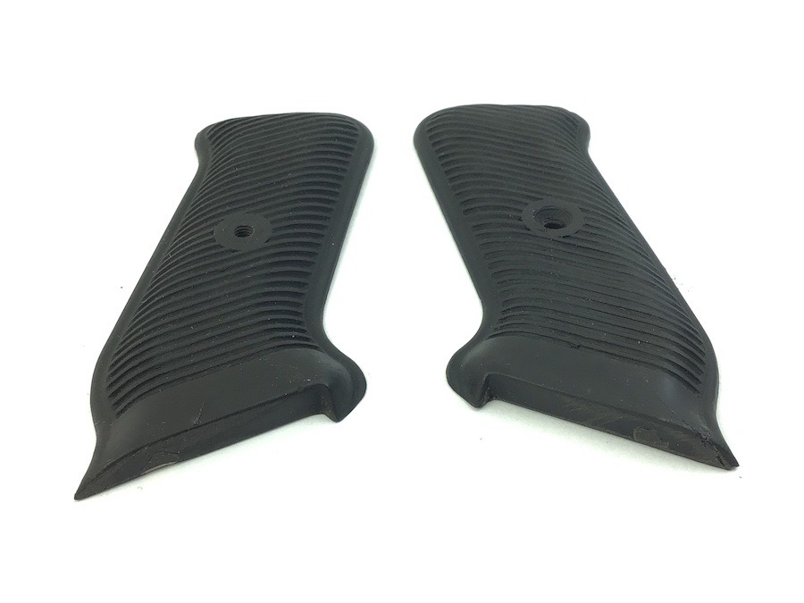 4/20/23 – Excellent condition. Plastic grip set for the MP-40 German sub machine gun. These appear to be a quality reproduction showing part numbers and maker stamp on the interior. No cracks, chips or warps.