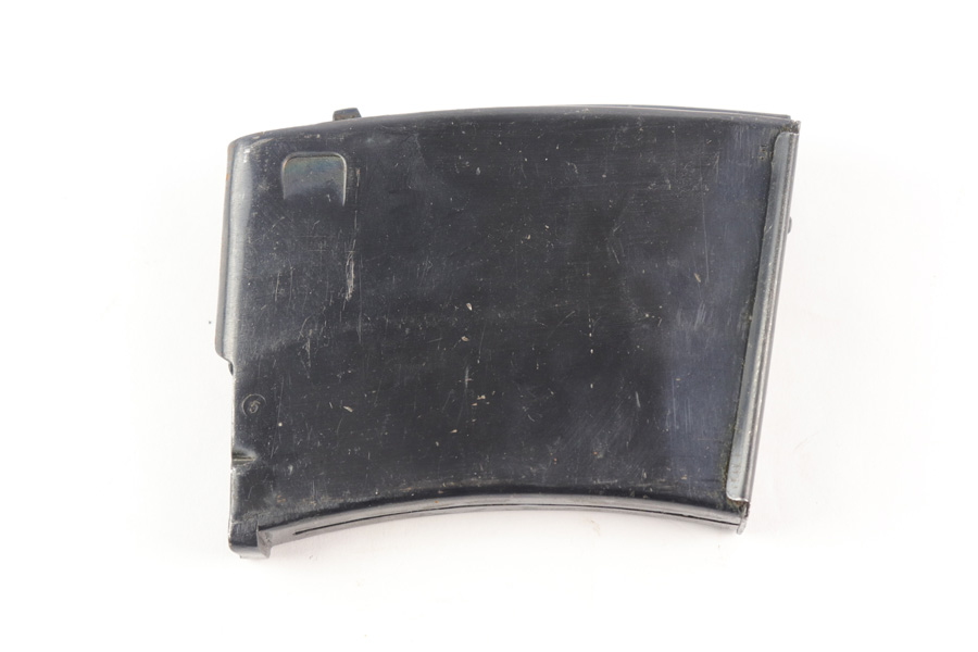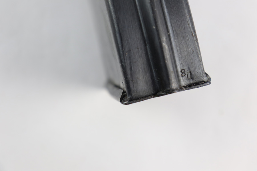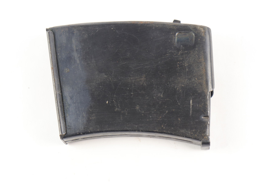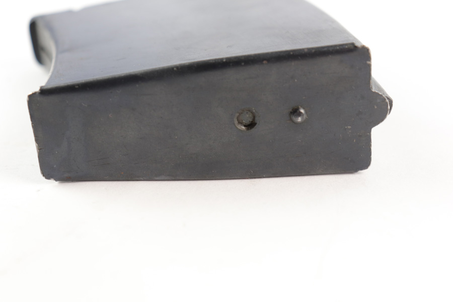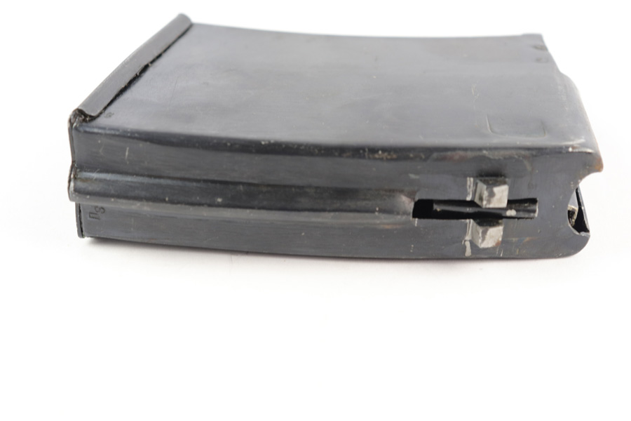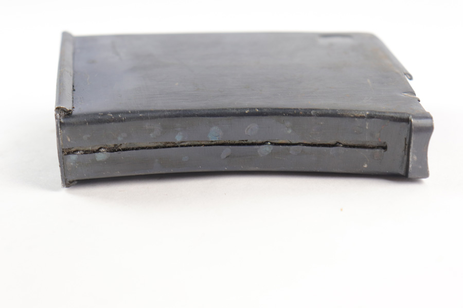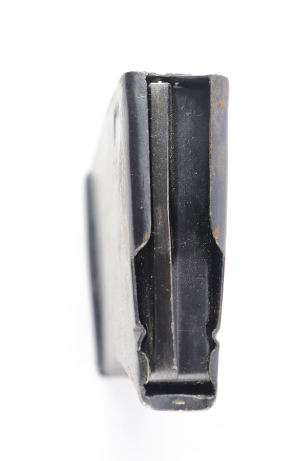 11/15/18 – This is an original Russian SVT-40 rifle magazine. The magazine has no markings besides a small stamp on the spine (“S []”). The spring is strong and fully functional. We think this is WW2 original due to the military style blued finish (dull with machine markings throughout). Some very light rust on the feed lips, but otherwise excellent condition.