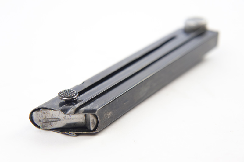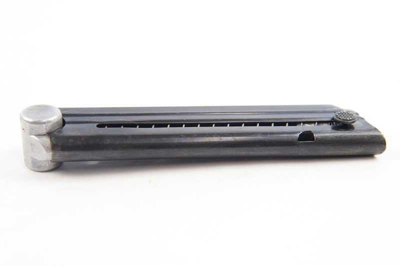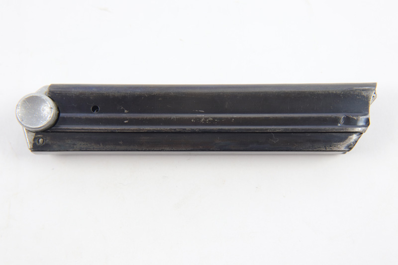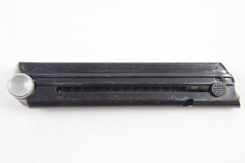 10/25/18 – This is an original and scarce variation Luger magazine from WW2. The magazine has a blued body and aluminum base, with “S/42” stamped on the base. There’s no serial number or other markings. This was meant to be a field replacement magazine from Mauser to soldiers who lost a magazine on the front lines. Very desirable magazine – guaranteed all original and fully functional.