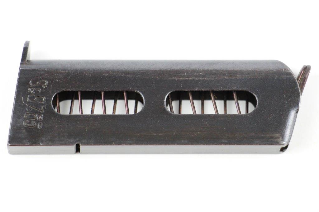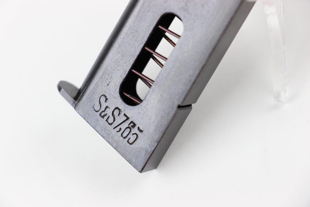 3/7/24 – This is an original early / pre WW2 era Sauer M1913 magazine. The magazine is marked on the left side “S&S 7,65” with no other markings. Excellent original finish throughout and a fully functional spring.