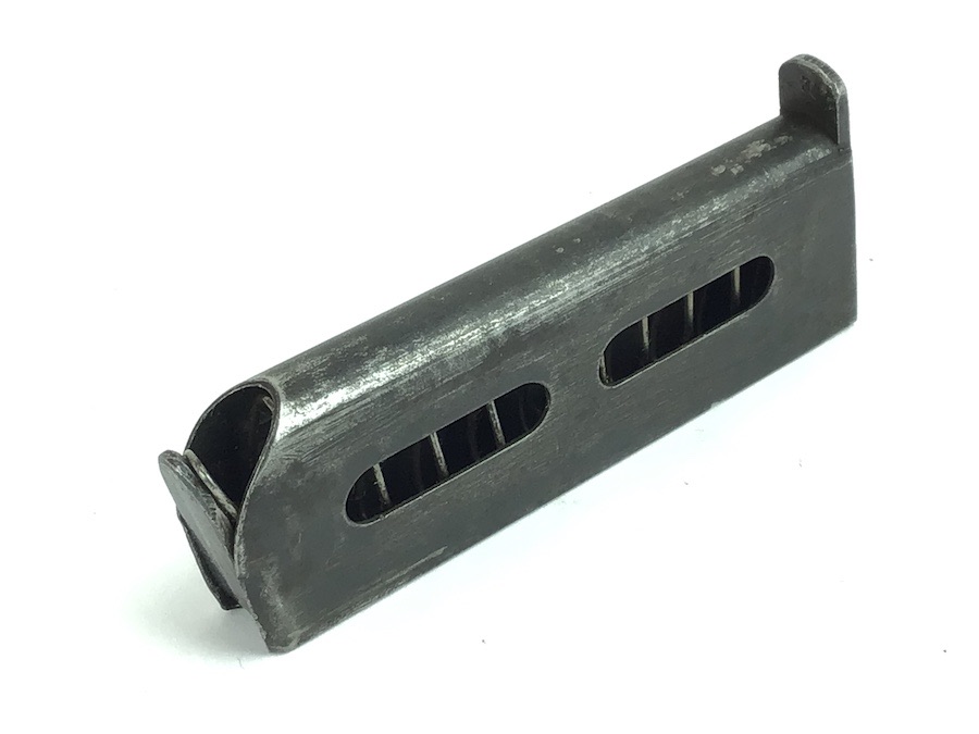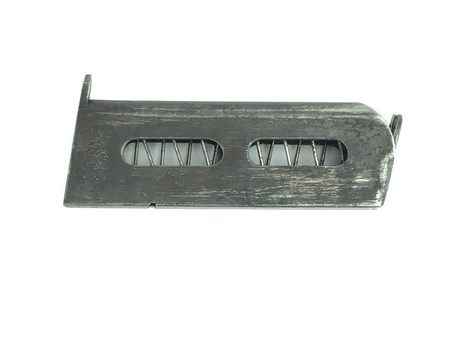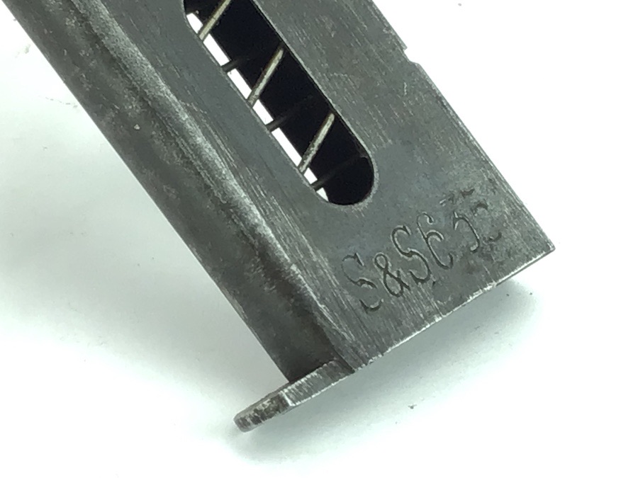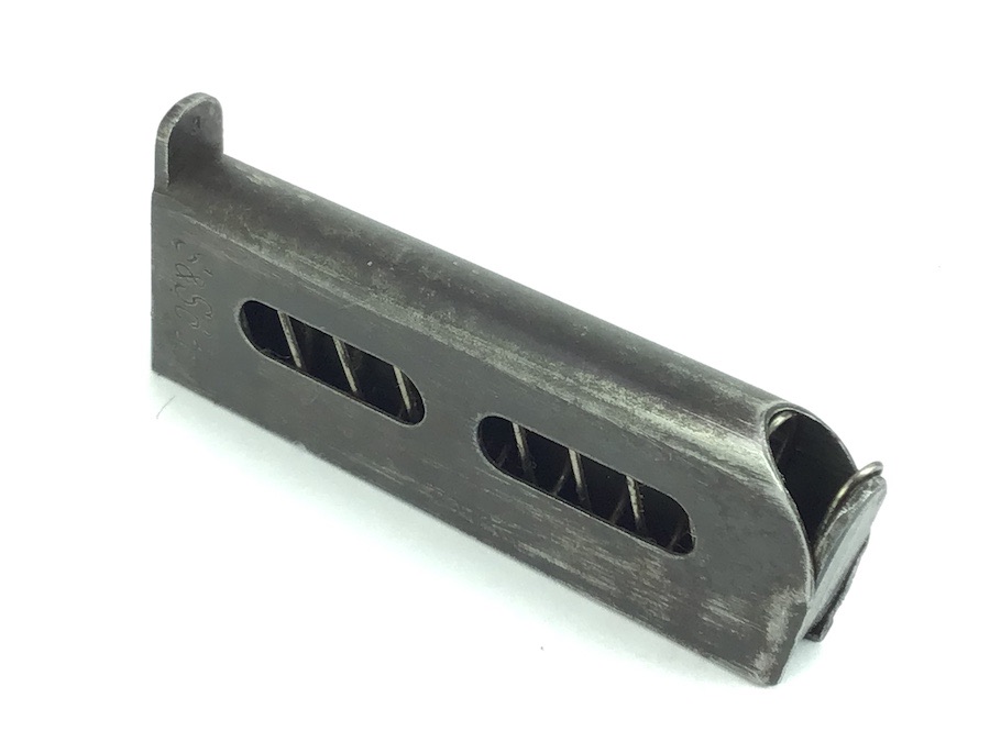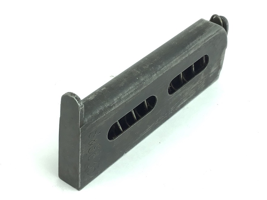 9/24/24 – Original and great condition. Rare variation, 6.35mm Sauer Model 1913 magazine. The left side of the magazine is stamped S&S 6.35. Minor use wear. The spring is excellent and fully functional.