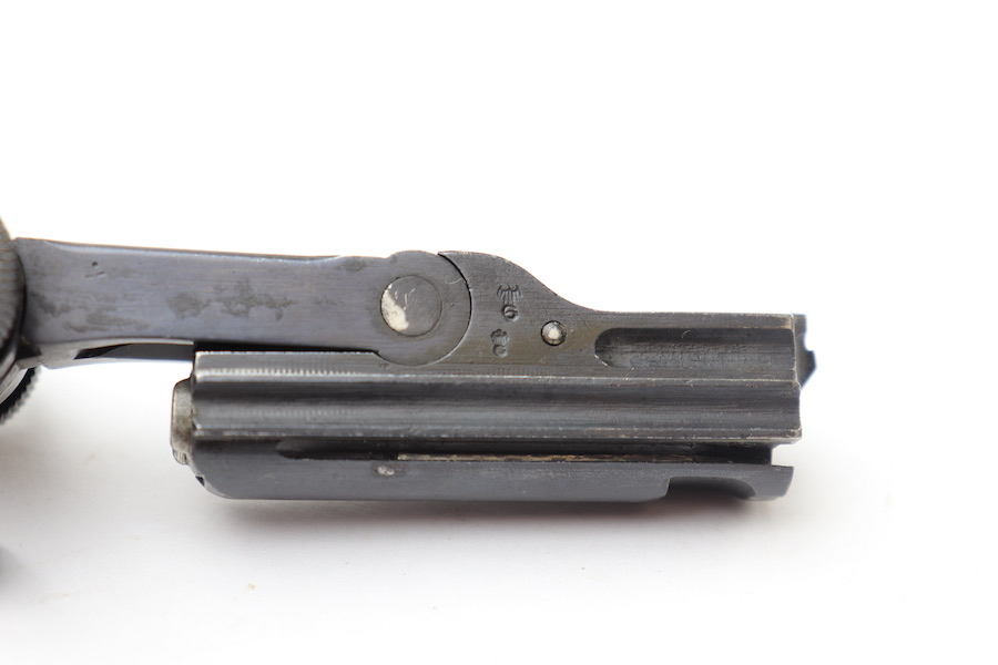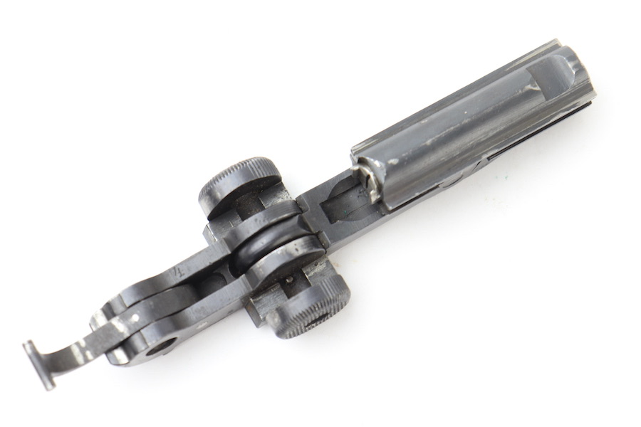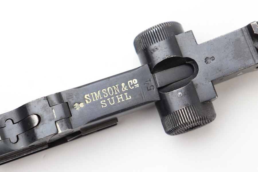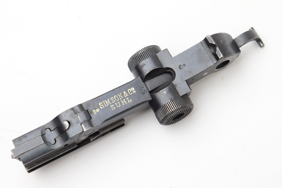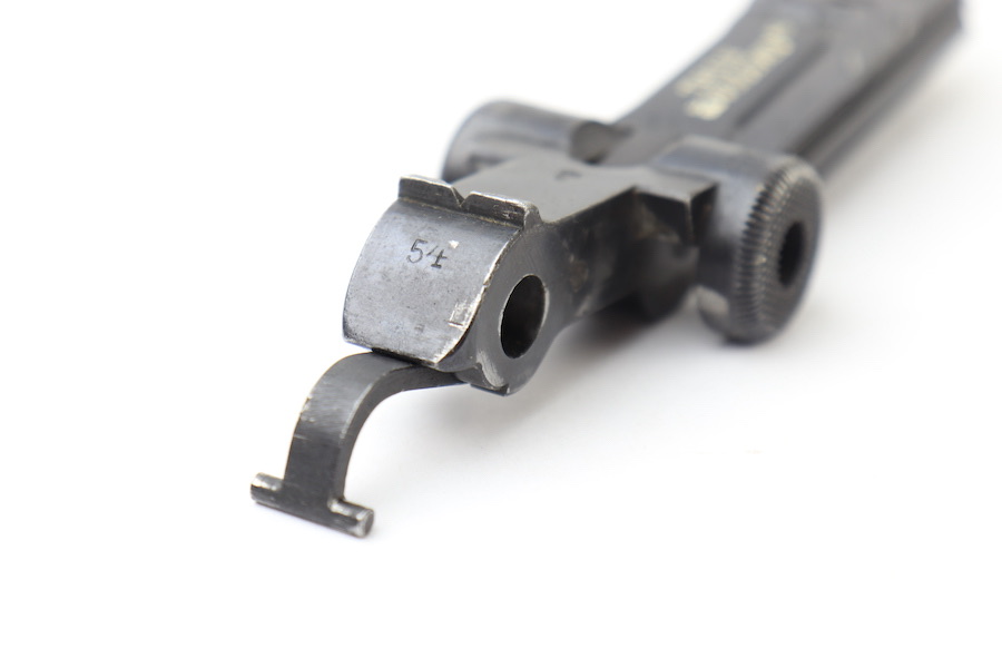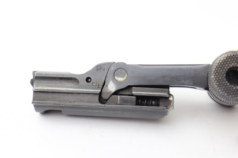 1/17/24 – Located at our Ohio office. This is a complete, authentic, numbers matching. (Number 54) Toggle Assembly for a WW1 era SImson & Suhl Luger. Bluing is 98% and all pieces function properly. Firing pin is fluted and numbers matching. Weimer era Eagle 6 proof stamped. Excellent piece.