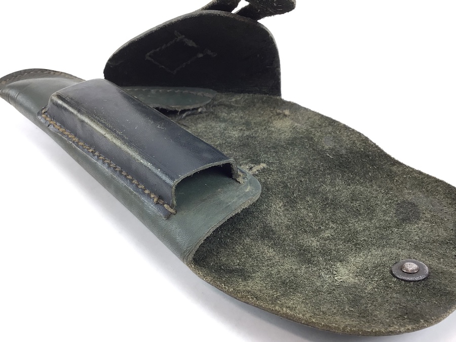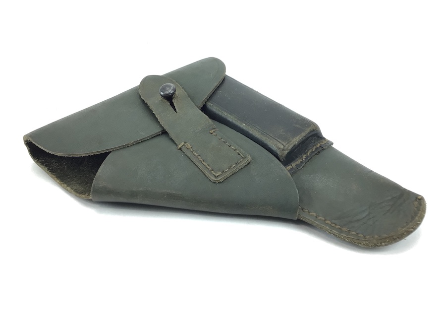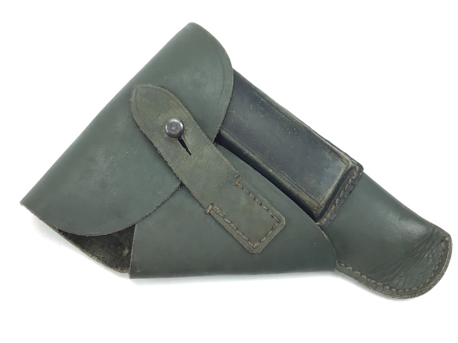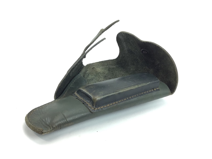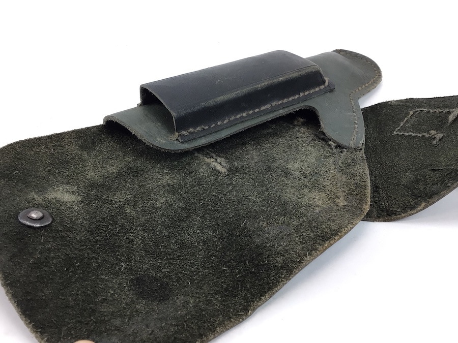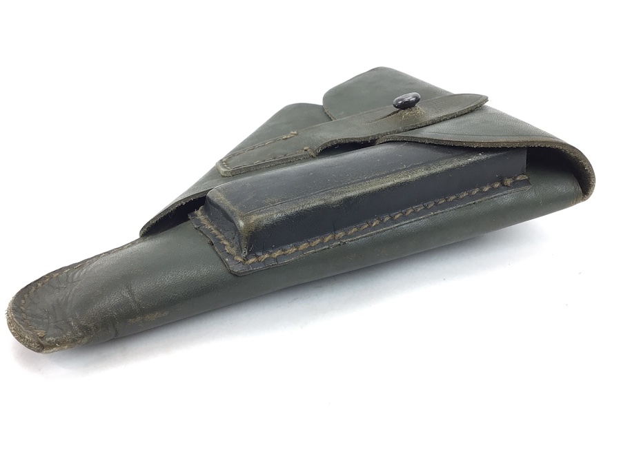 6/4/21 – Excellent and original condition, Italian Beretta holster from WW2. Also commonly found paired with Walther PP’s. The holster is a green “forestry police” style, which has become increasingly difficult to find. The holster has no markings, but is guaranteed original and authentic from WW2. The stitching is excellent, and the leather is great. Minimal wear. Clean interior.