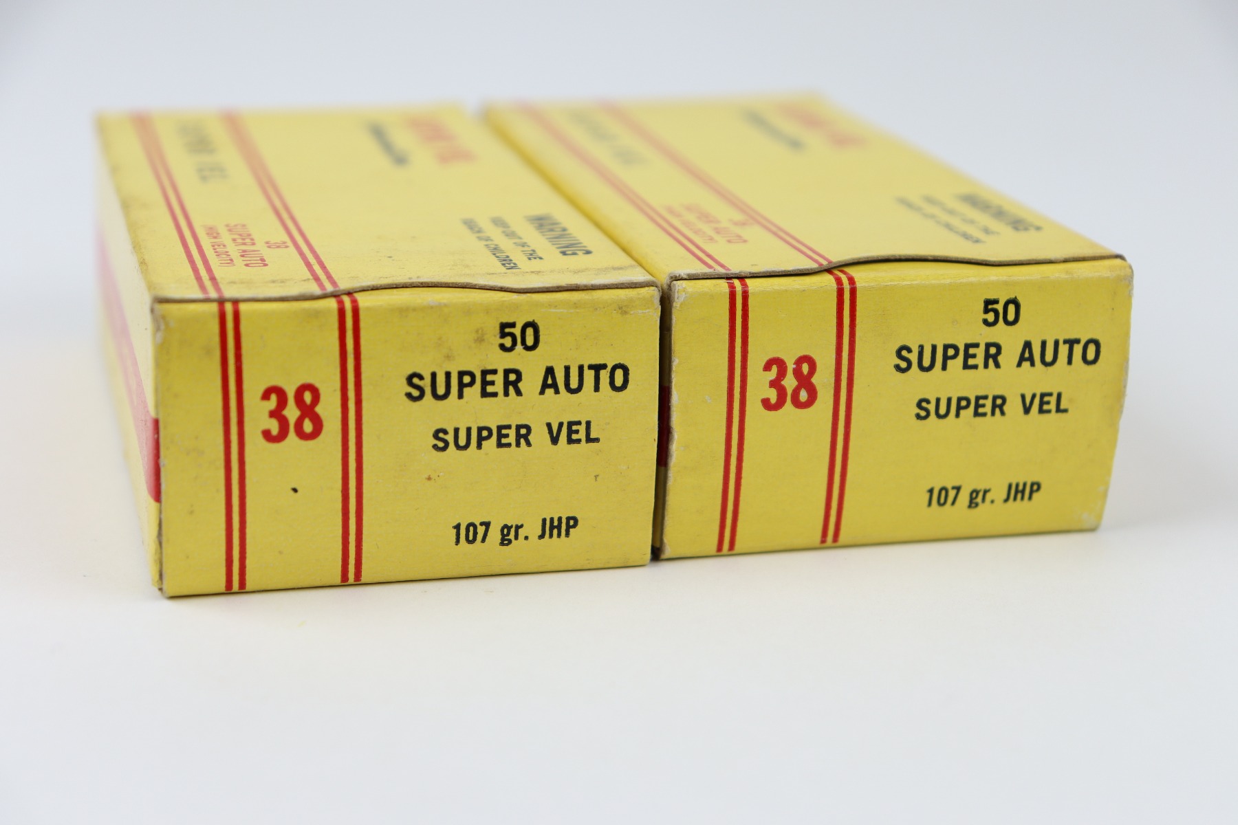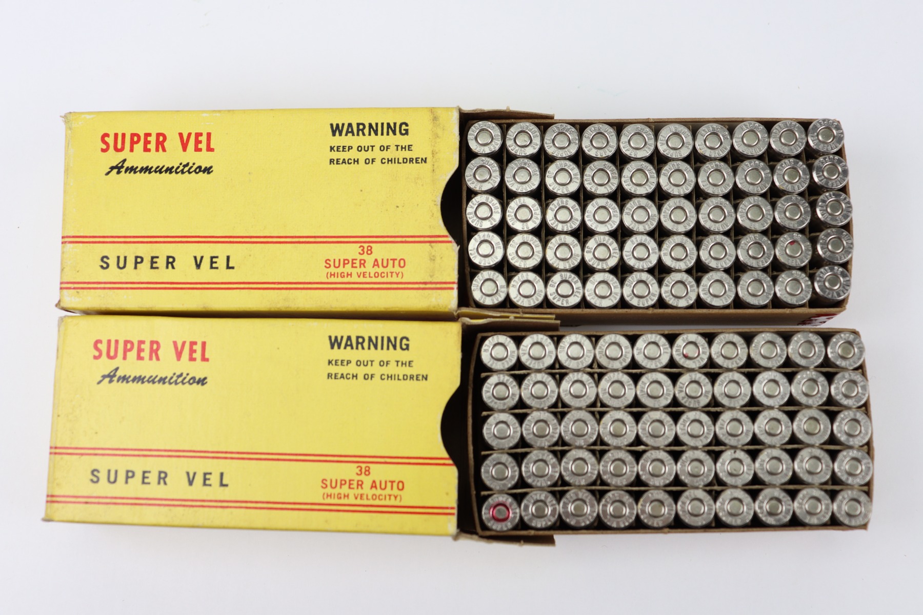 9/29/23 – This is 100 rounds of .38 Super ammunition. 107 gr. JHP rounds by Super Vel. Excellent condition in the original boxes.
