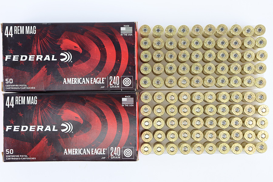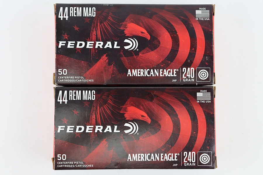10/9/23 – This is 100 rounds of Federal American Eagle .44 Remington Magnum 240 Grain Jacketed Hollow Point Centerfire Handgun Ammunition. Like-new condition in the original boxes as shown.