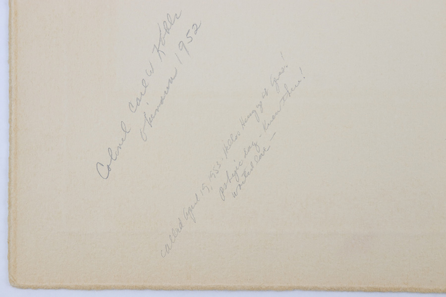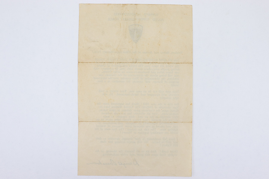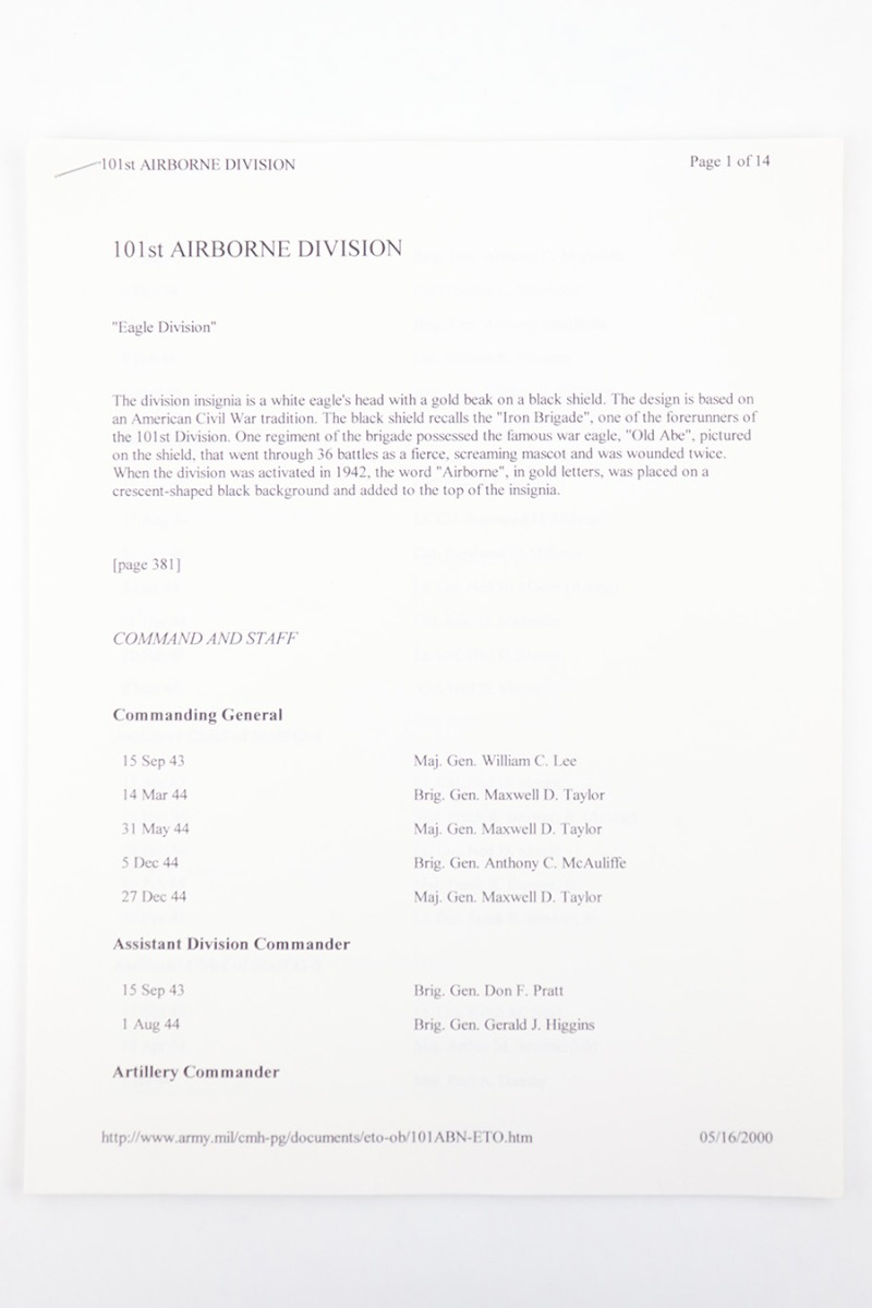 6/5/23 – This is an original photo of 101st Airborne soldier Carl William Kohls. The photo was taken in 1952, after Kohls’ service during WW2. Accompanying this photo is a letter to the Allied Expeditionary Force, and some French marks. There’s also some documentation showing who Carl Kohls was, when he was born and died, etc. He is noted as Assistant Chief of Staff G-4 on September 15, 1943 and was particularly crucial during the crisis at Bastogne.