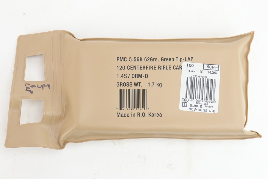 8/28/24 – This is a factory new 120 Round Battle Pack of 5.56x45mm Steel Core Rifle Ammo. The bag shows no signs of rips or tears, but some minor scuff discoloration on the back of the package. The package contains 6 individual boxes with 20 rounds each.