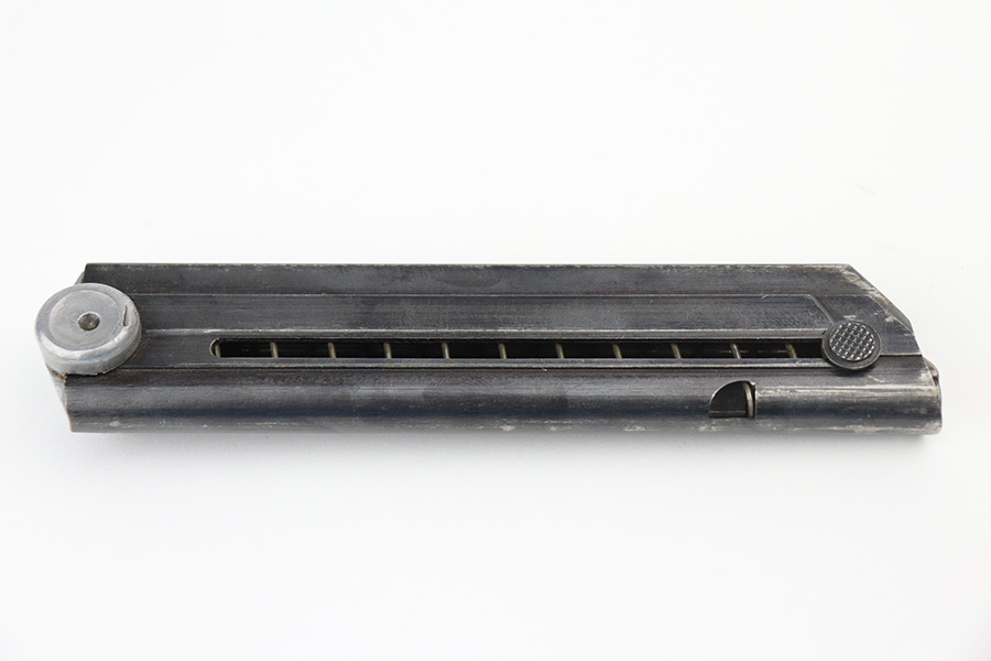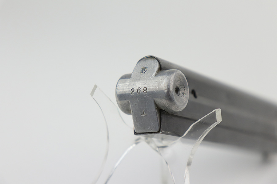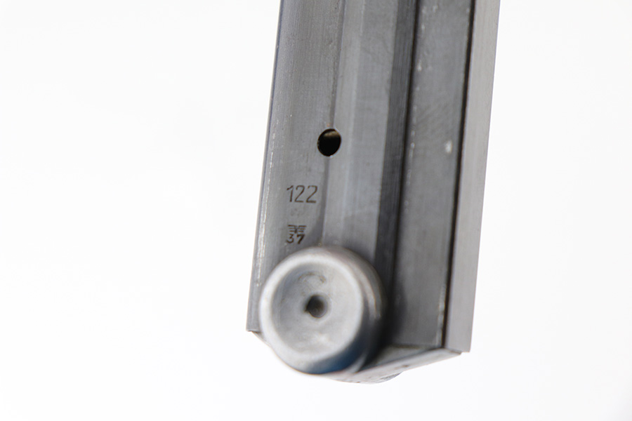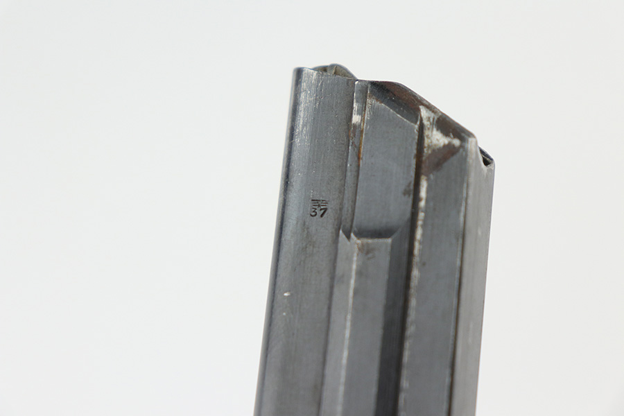 9/20/21 – This is an original WW2 production Luger magazine. The magazine tube is blued in great condition with minimal wear. There’s a 122 code maker stamp and two eagle/37 proofs. The base of the magazine also has an eagle 37 proof stamp and serial number 268. The spring is strong and fully functional.