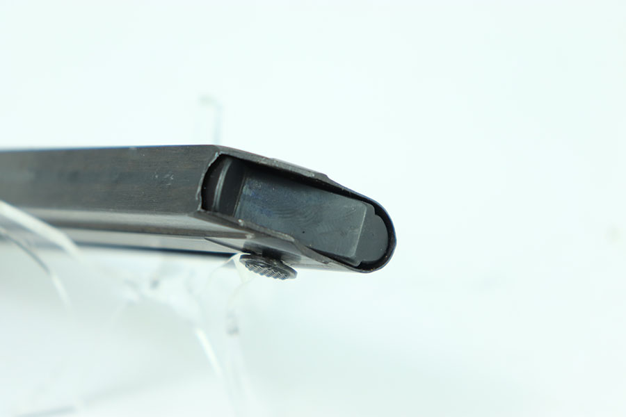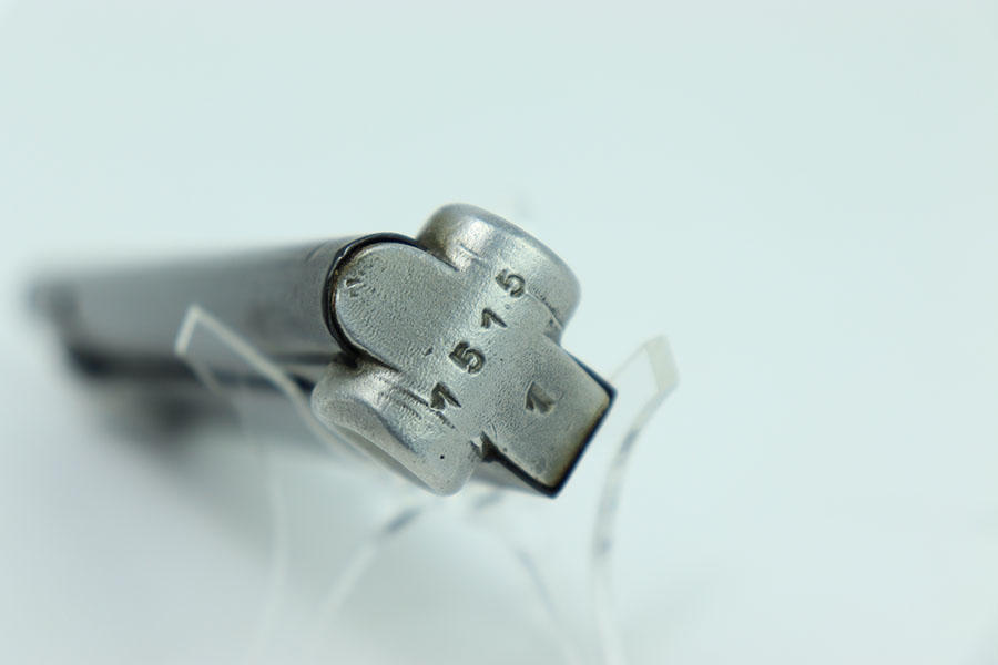 5/22/24 – This is an excellent example of a 122 code luger magazine that has been renumbered. The tube of this magazine is in excellent+ condition with almost no wear. The base is filed down and re-stamped with a new serial number “1515.” With a 1 underneath.