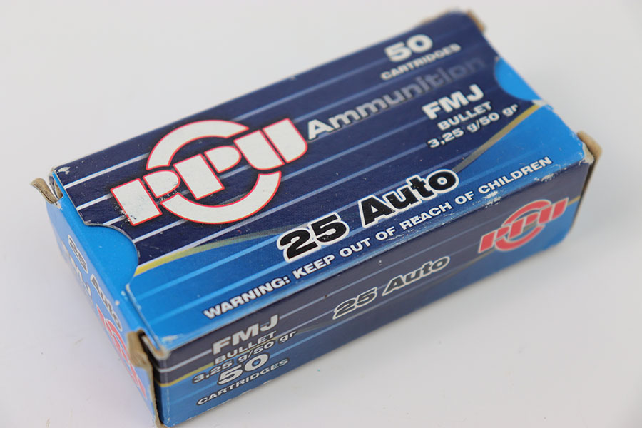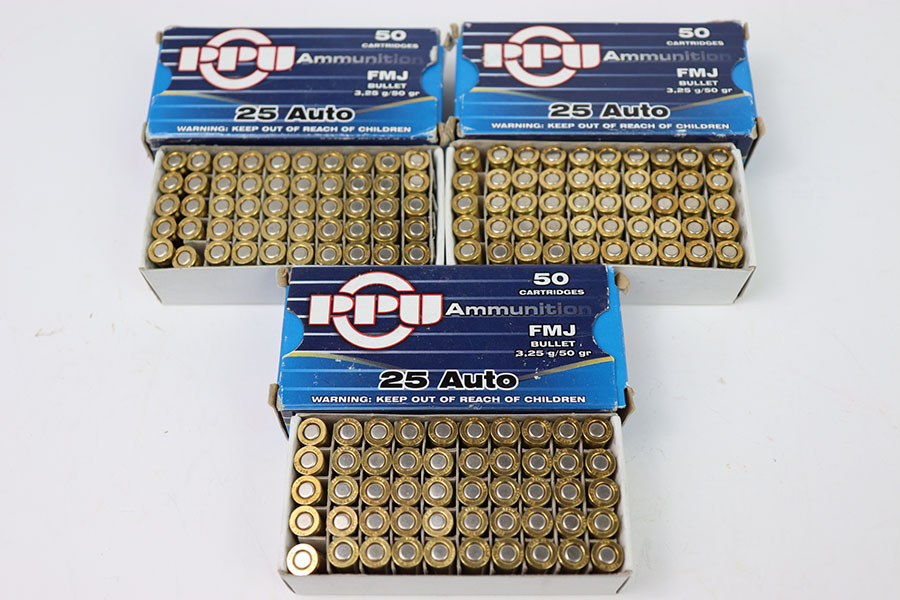 3/18/24 – 150 rounds of PPU 25 Auto. New in original packaging.