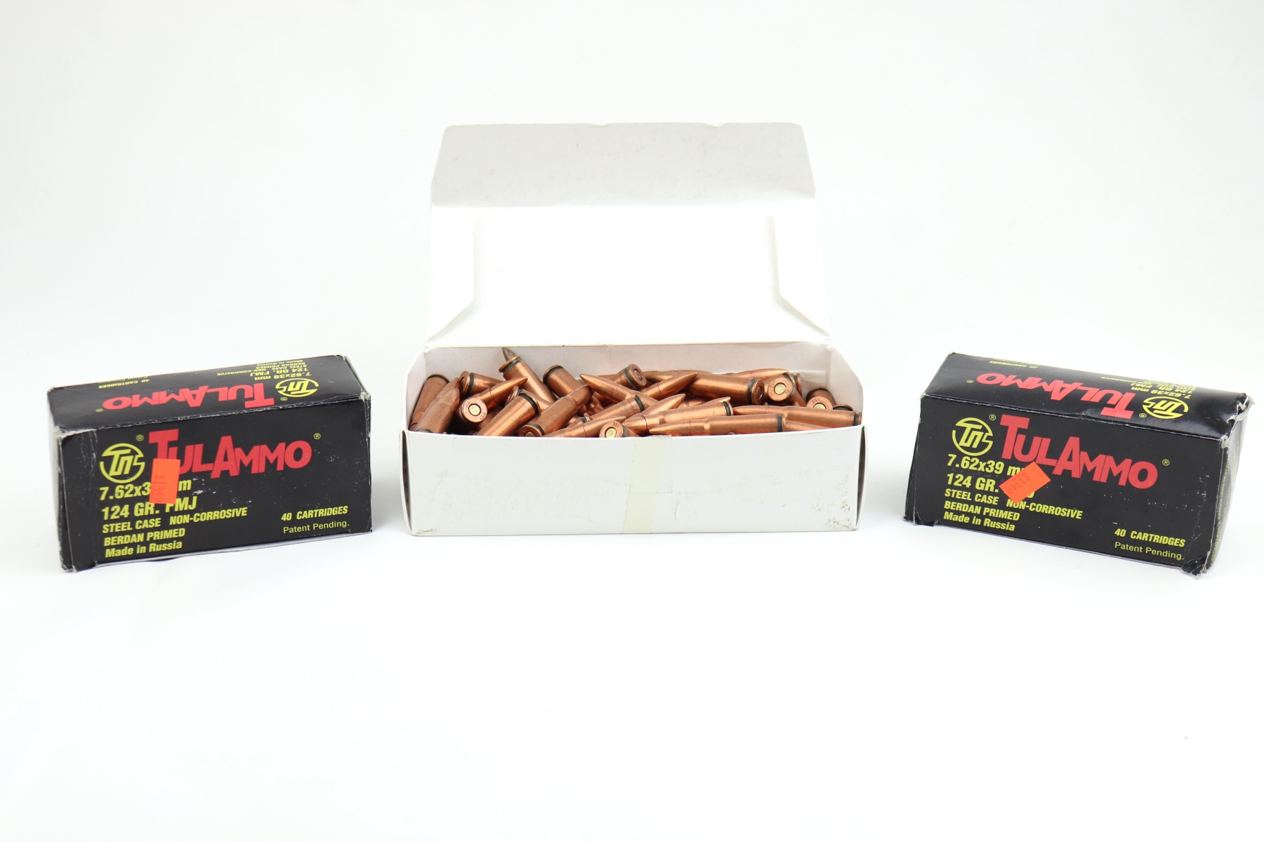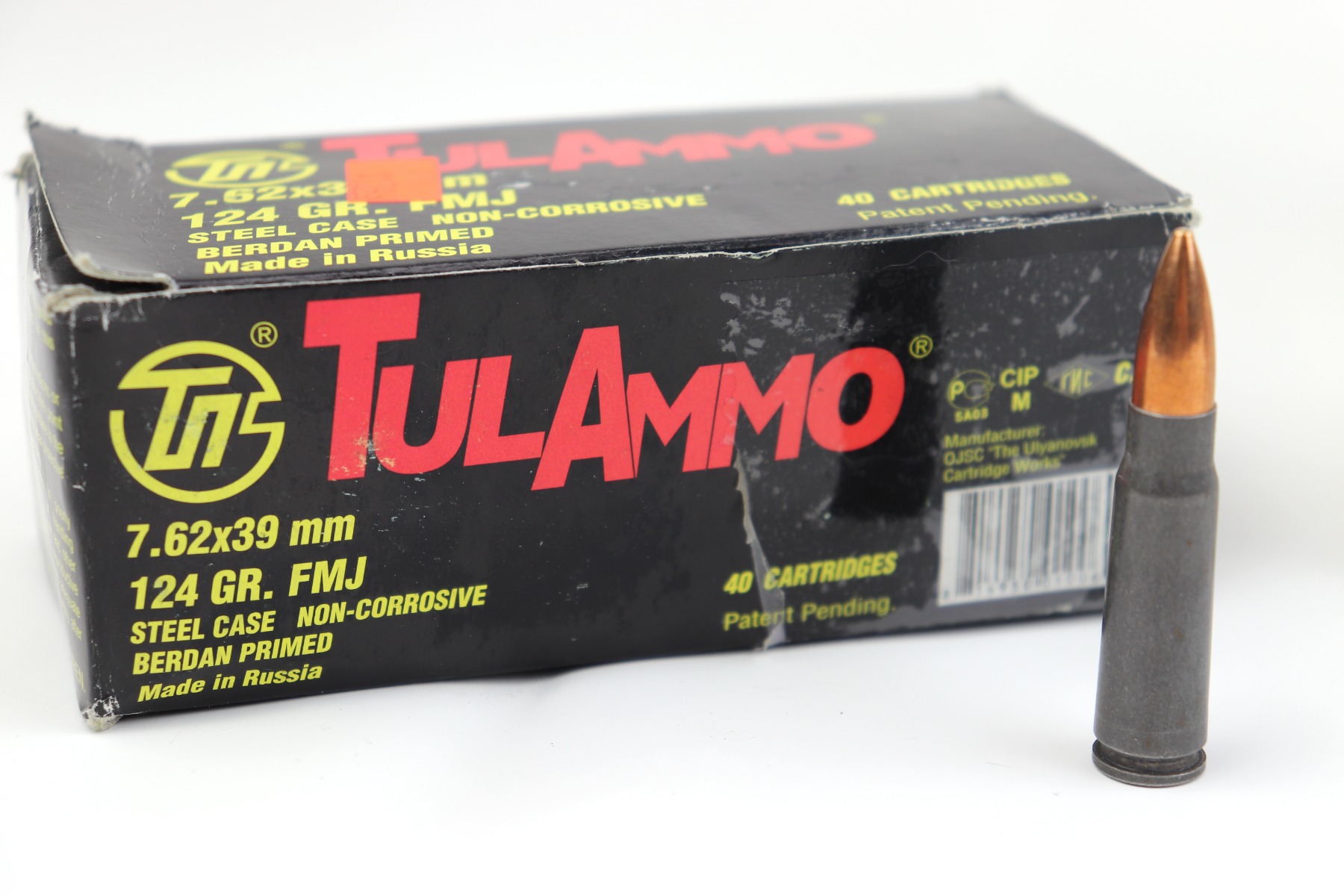1/2/24 – This lot is for 180 rounds of 7.62x39mm ammo. The boxes are not in the greatest shape but all of the ammo is perfectly shoot-able. The TulAmmo has 124 Grain FMJ projectile, it is Berdan primed and is non-corrosive. The copper painted ammo is most likely Chinese Chicom ammo and has corrosive primers along with a steel core projectile, we advise cleaning your firearm thoroughly after use with that ammo.