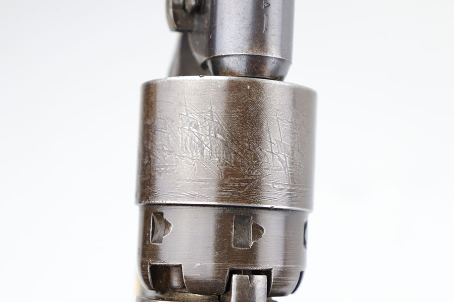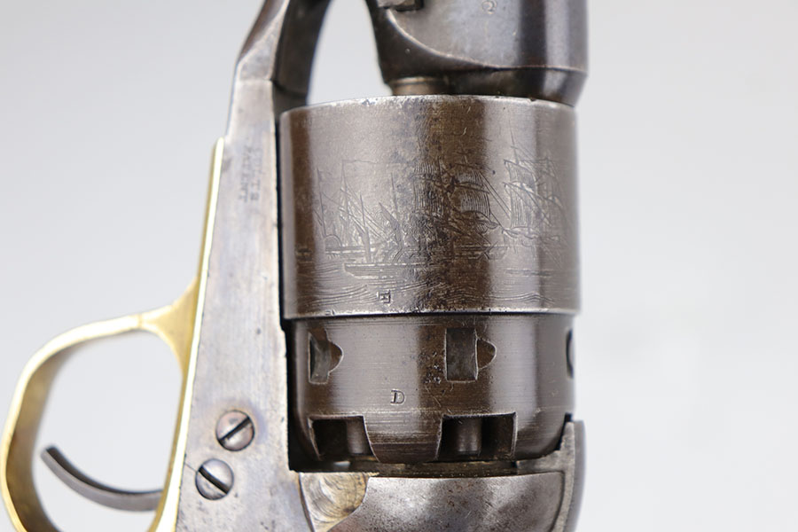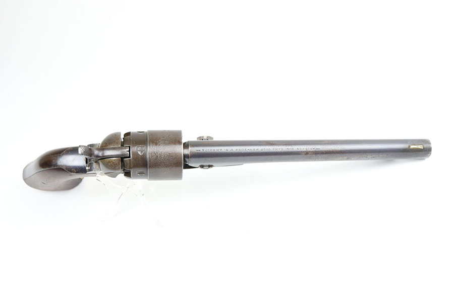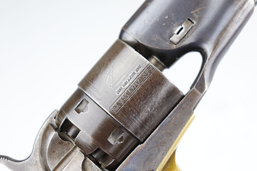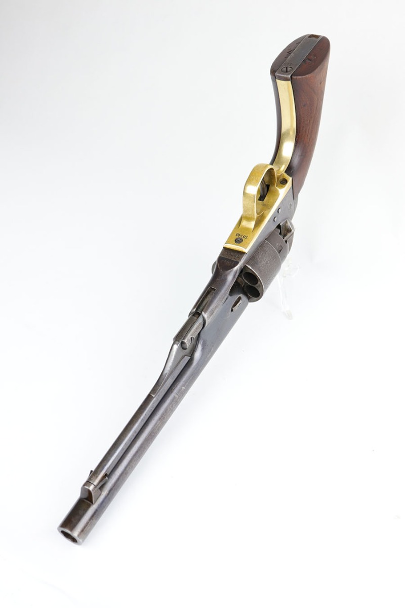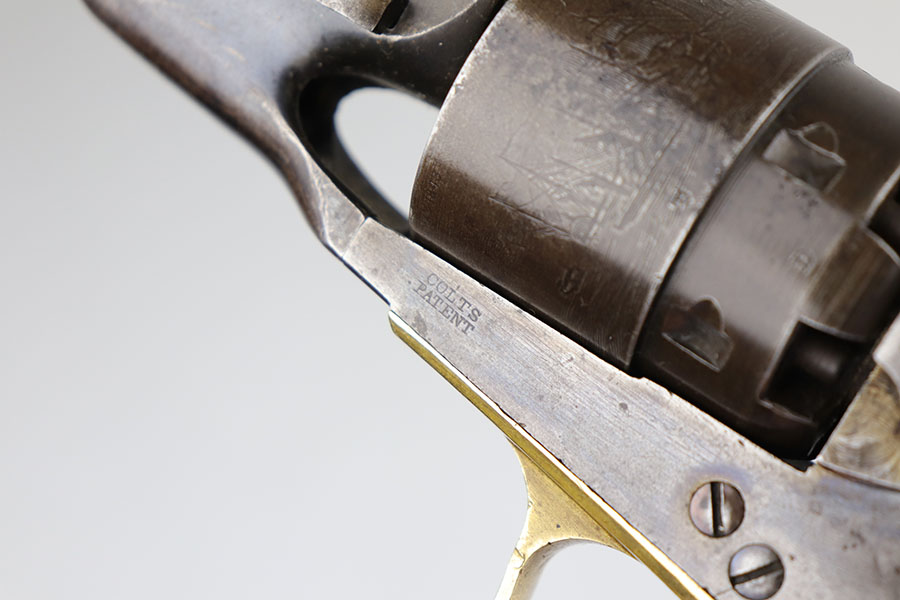 4/20/22 – This is an original Colt 1860 Army revolver, manufactured in 1862. The finish shows some obvious thinning in most areas but is in pretty good condition given the age. The bore is near-mint and about as nice as you’ll see for this model. Inspector markings visible on frame and barrel, as well as cartouches on grip panels. Parts are all matching, including the wedge. Couple of minor dings on the trigger guard. The listing includes the Colt archive letter stating it was shipped to Frankford Arsenal in 1863, so this one served for the Union Army. A copy of Pate’s book on the Colt Model 1860 Army Revolver is also included with this listing. Antique so no license required.