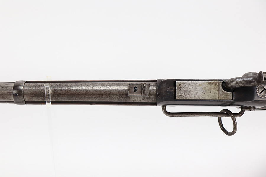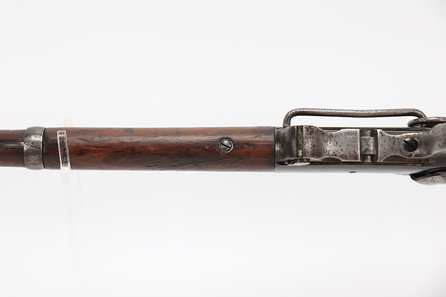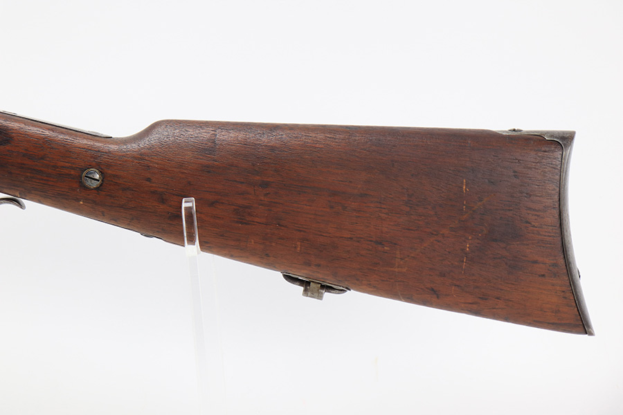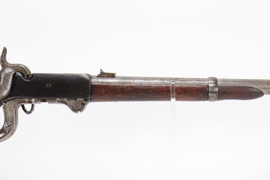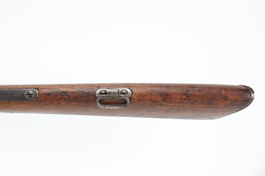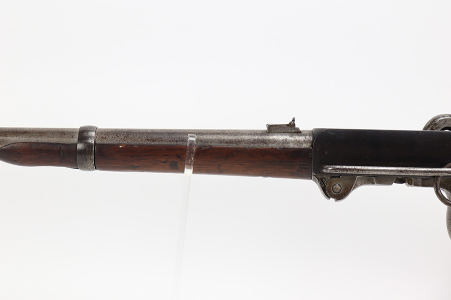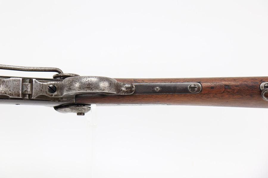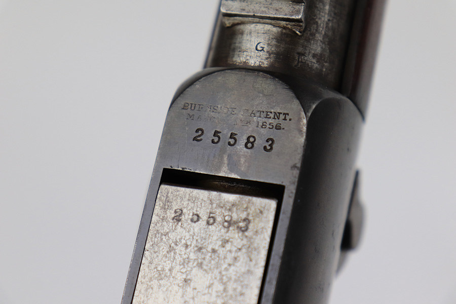5/11/23 – This is a scarce Burnside 4th Model Carbine manufactured in 1862. Only about 7,000 of these made. This one is matching and in fair condition overall. There is no major damage to the metal, but there is obvious spotty oxidation and “attic patina” on the whole gun. The wood furniture is nice, but there are dings and scratches here and there. Most of the wear can be seen on the handguard. The bore has good rifling, but there are some spots of pin-pricking, mainly around the muzzle end.