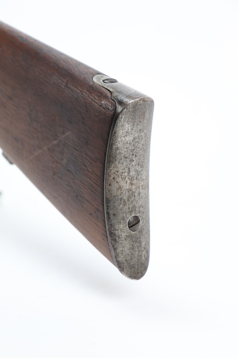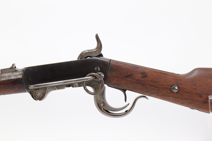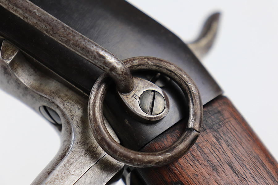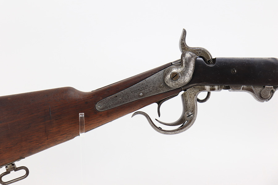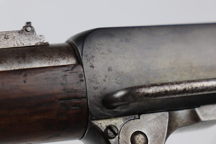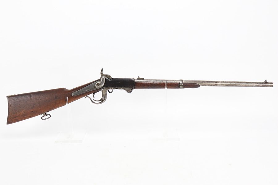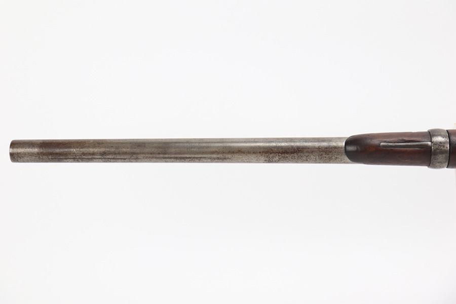 5/11/23 – This is a scarce Burnside 4th Model Carbine manufactured in 1862. Only about 7,000 of these made. This one is matching and in fair condition overall. There is no major damage to the metal, but there is obvious spotty oxidation and “attic patina” on the whole gun. The wood furniture is nice, but there are dings and scratches here and there. Most of the wear can be seen on the handguard. The bore has good rifling, but there are some spots of pin-pricking, mainly around the muzzle end.