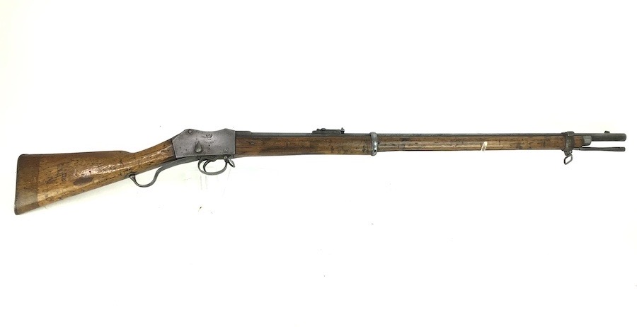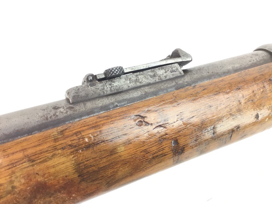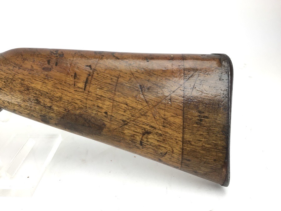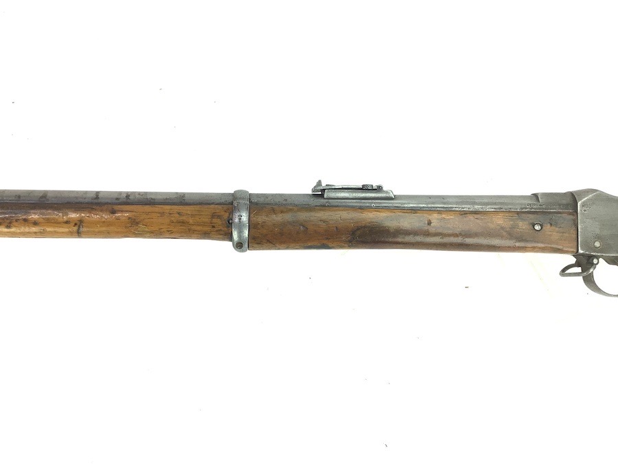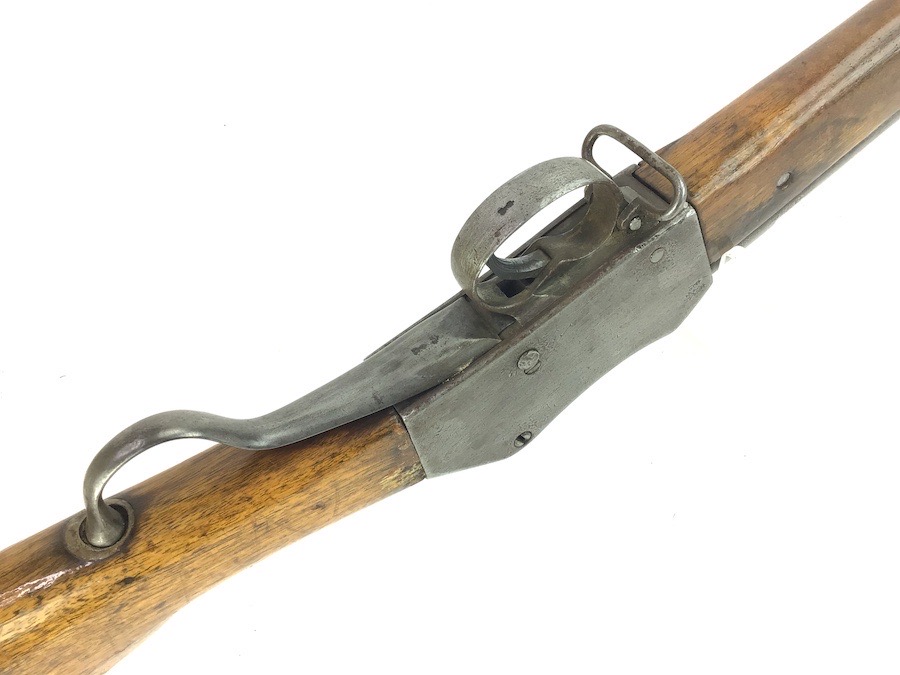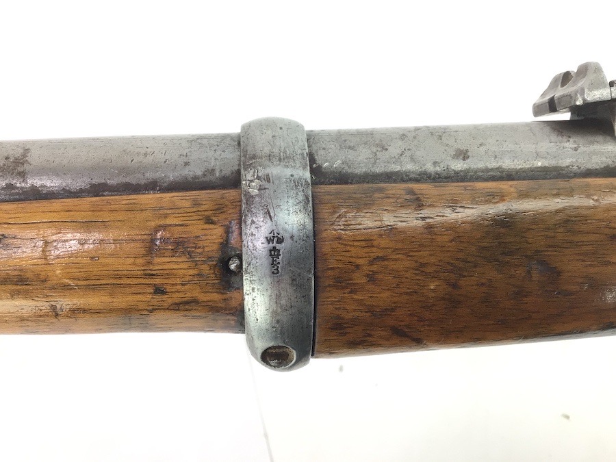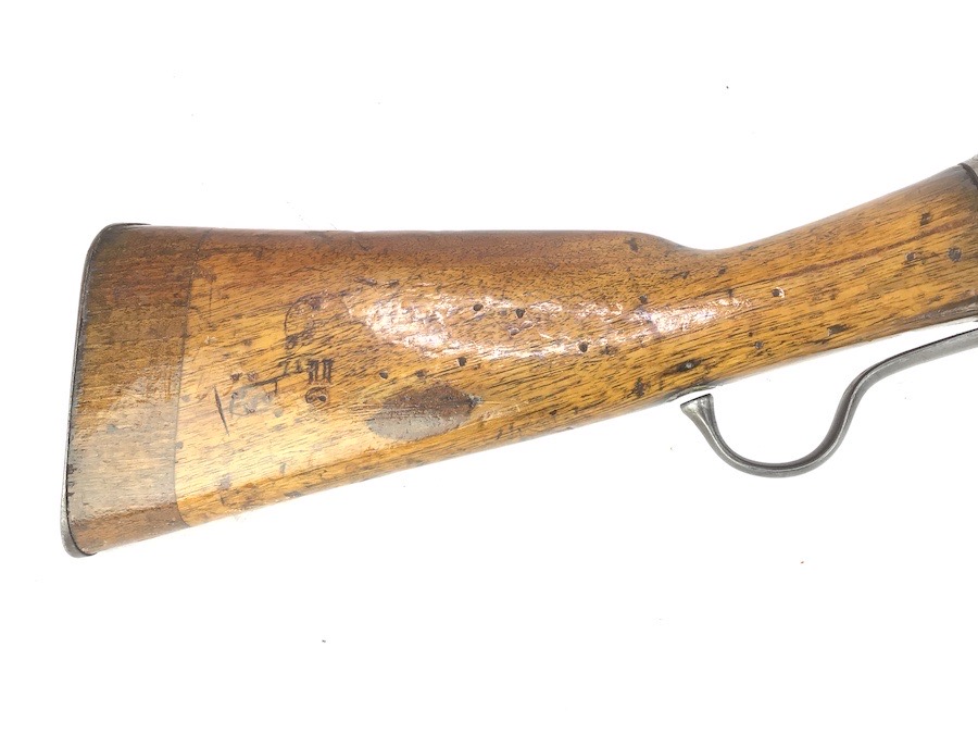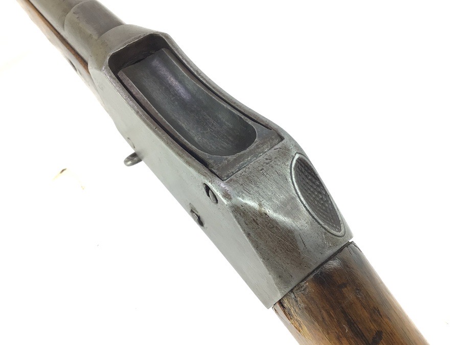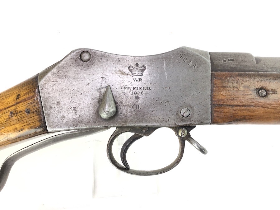 9/3/24 – Original and good condition. 1876 Enfield #II Martini/Henry chambered in .303 British. Although the bluing is worn throughout, there is a very pleasing patina remaining that shows honest use wear. All the marking are still distinct and visible. The bore is very clean and has strong rifling with only minor pitting near the muzzle. The stock is showing its’ age with a minor chip just behind the receiver on the right side. Fully functional with a smooth action. Antique. No FFL required.