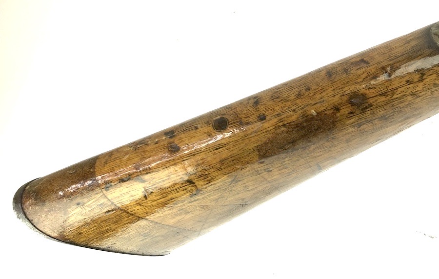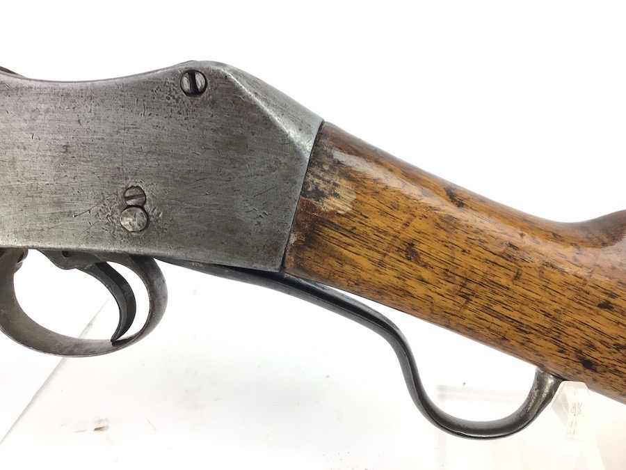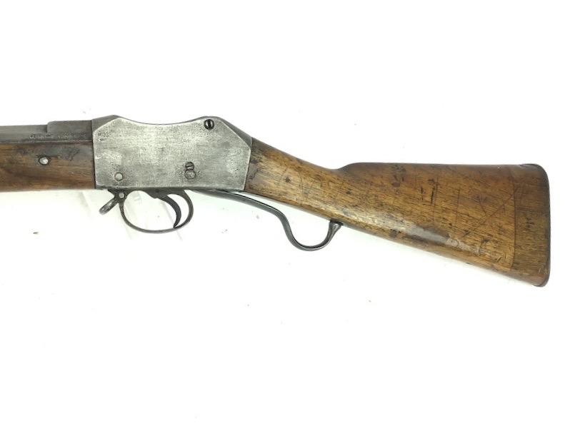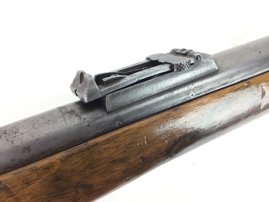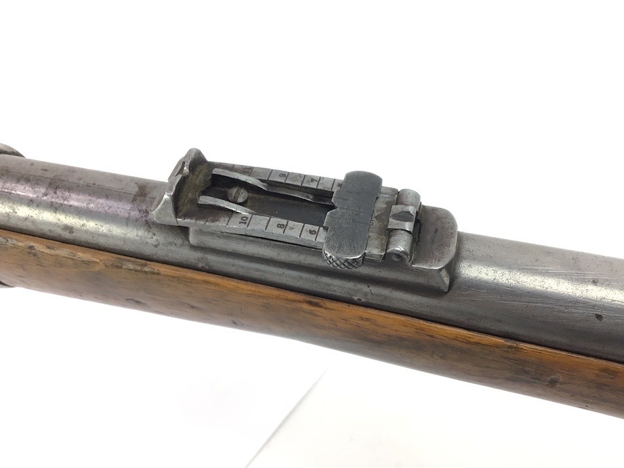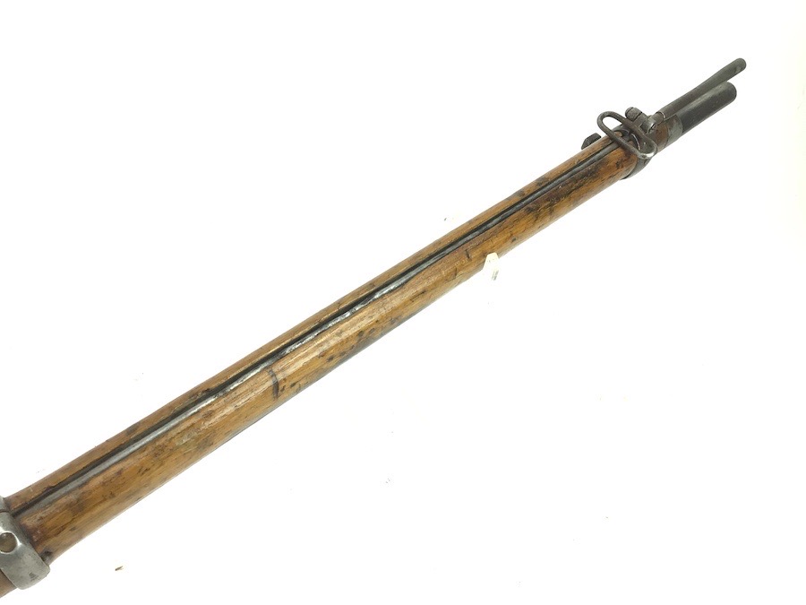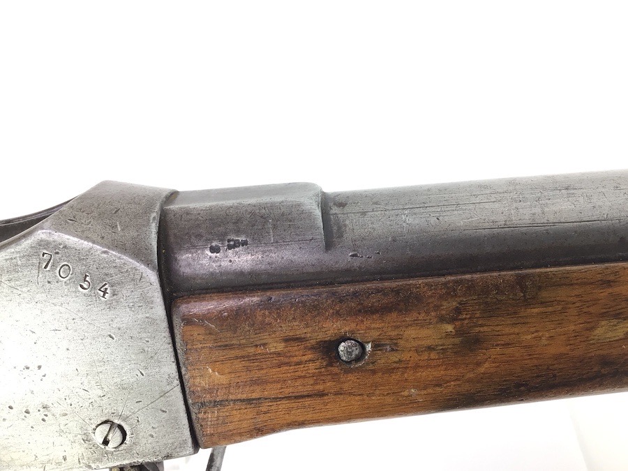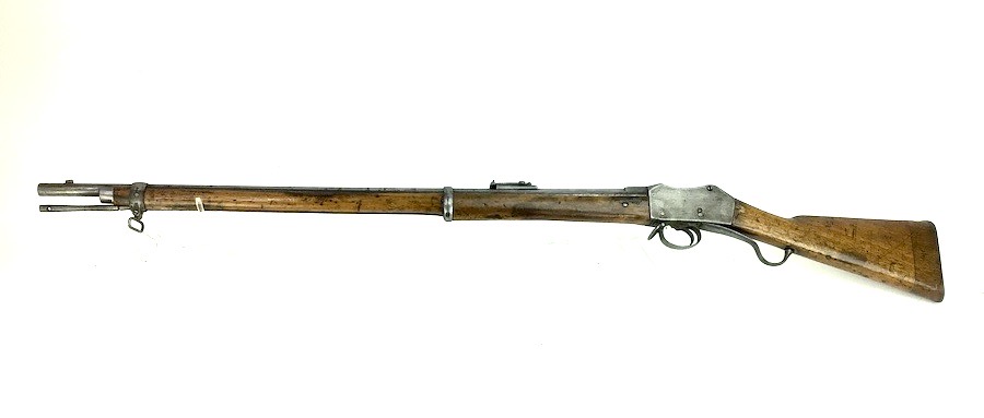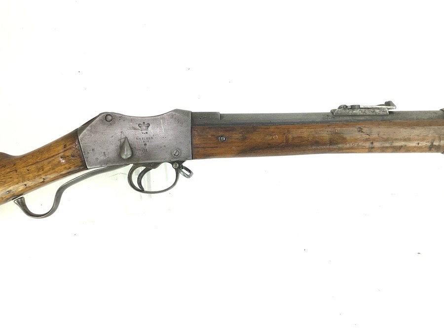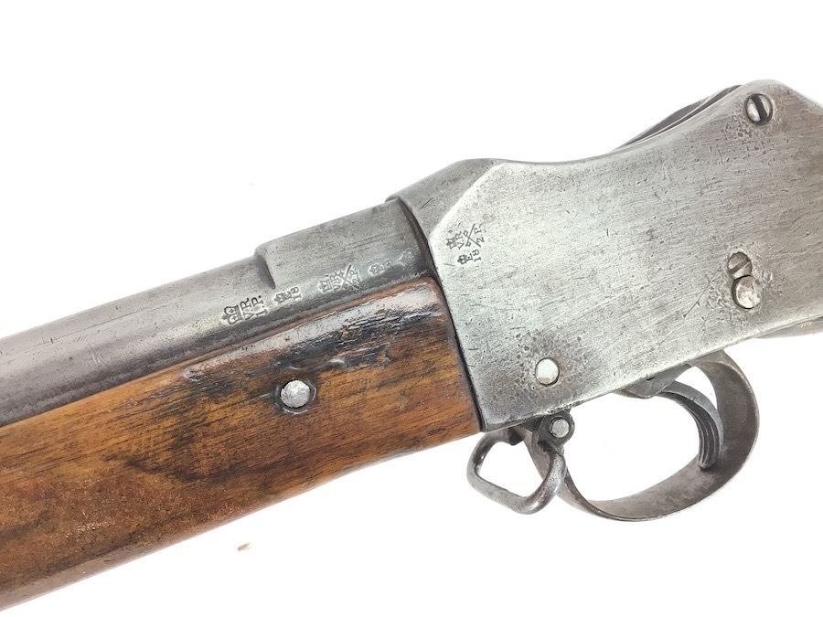 9/3/24 – Original and good condition. 1876 Enfield #II Martini/Henry chambered in .303 British. Although the bluing is worn throughout, there is a very pleasing patina remaining that shows honest use wear. All the marking are still distinct and visible. The bore is very clean and has strong rifling with only minor pitting near the muzzle. The stock is showing its’ age with a minor chip just behind the receiver on the right side. Fully functional with a smooth action. Antique. No FFL required.