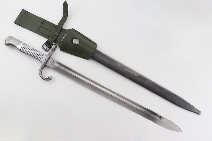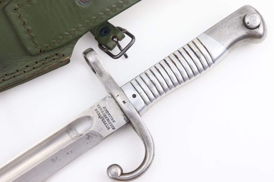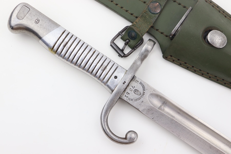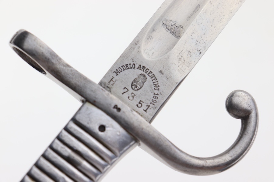 SOLD – 1891 Argentine Mauser Bayonet With Crest Intact