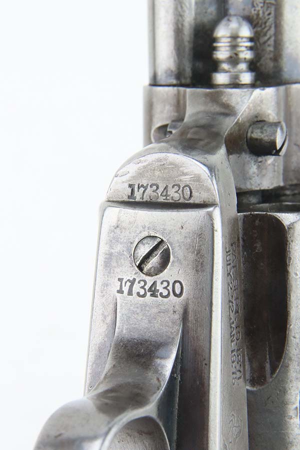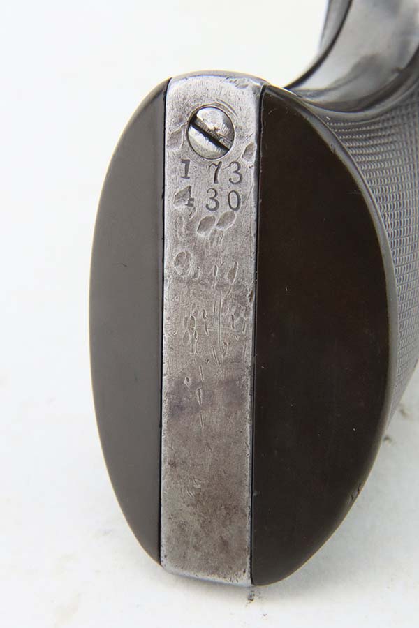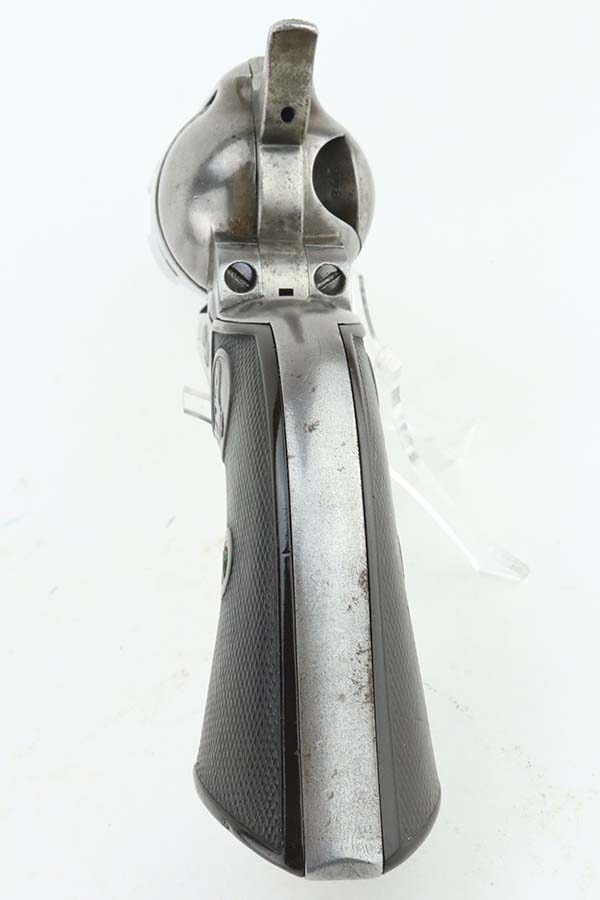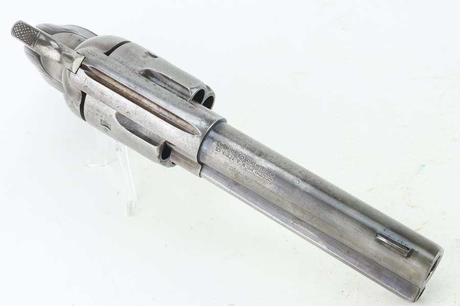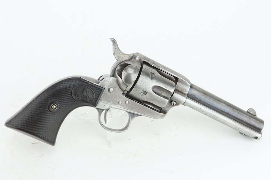 3/26/24 – This is a nice example of a Colt Single Action Army from 1897. Chambered in .45 Colt with a 4.75 inch barrel. It is all matching and fitted with period-correct hard rubber grips. It has lost nearly all of its original finish with spotty patina and oxidation here and there. For its age, the bore has great rifling with just very minor pin-pricking throughout. Fully functional with a smooth action.
