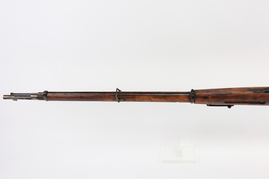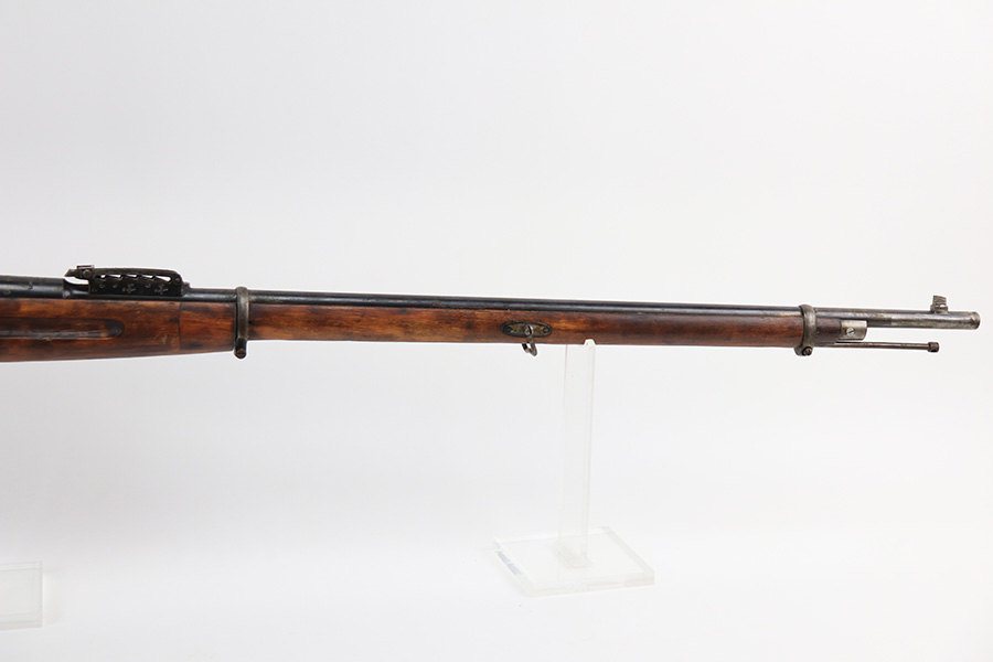 1/5/22 – This is a nice example of a Russian Moin-Nagant Model 1891 manufactured in 1898. As evidenced by the “Rectangle SA” markings, this gun was reworked by the Finnish. Many serial numbers on the gun (not matching) have been crossed out, more evidence of its rework. No import marks. Comes with an original cleaning rod. Overall, the gun is in nice condition. Generally, there is wear around the high edges. There is noticeable scratchy wear around the muzzle and areas of splotchy discoloration along the whole barrel and some on receiver. The magazine has almost no finish left. The stock is nice with only minor dings and dents here and there. The bore has good rifling with some areas of minor pin-pricking.