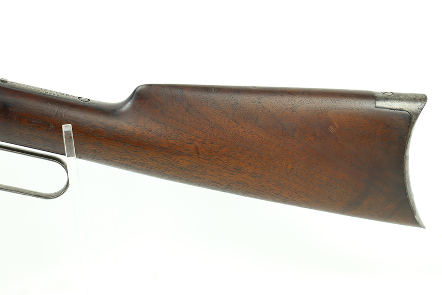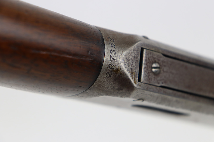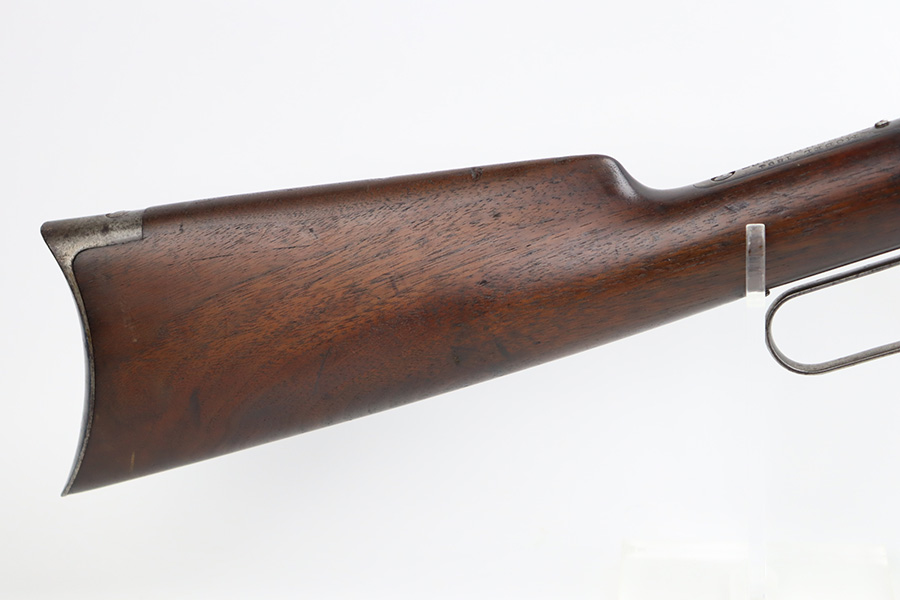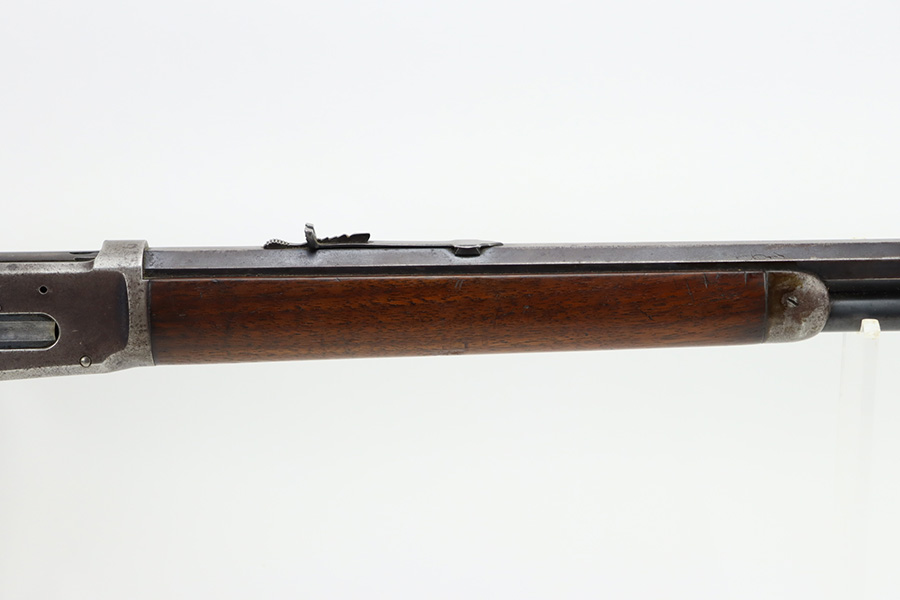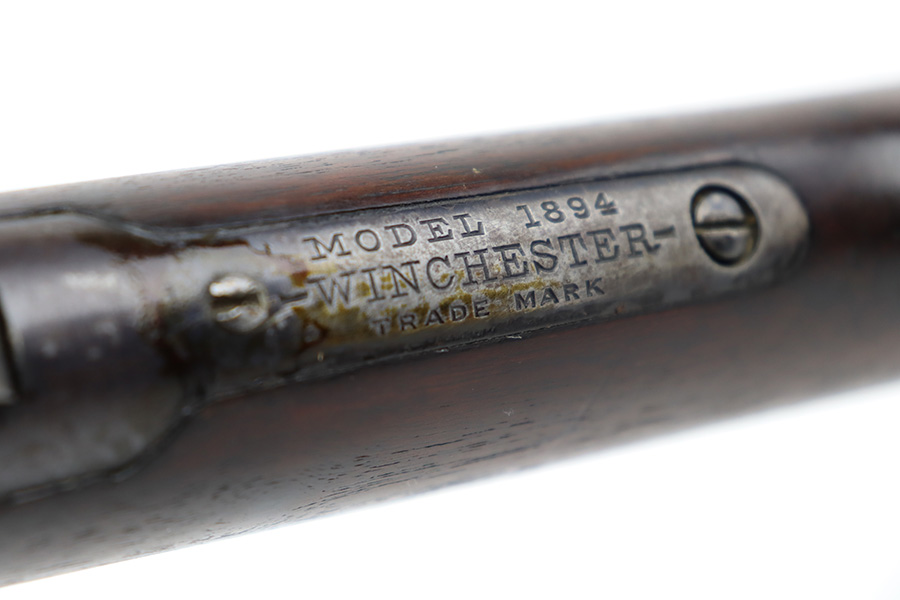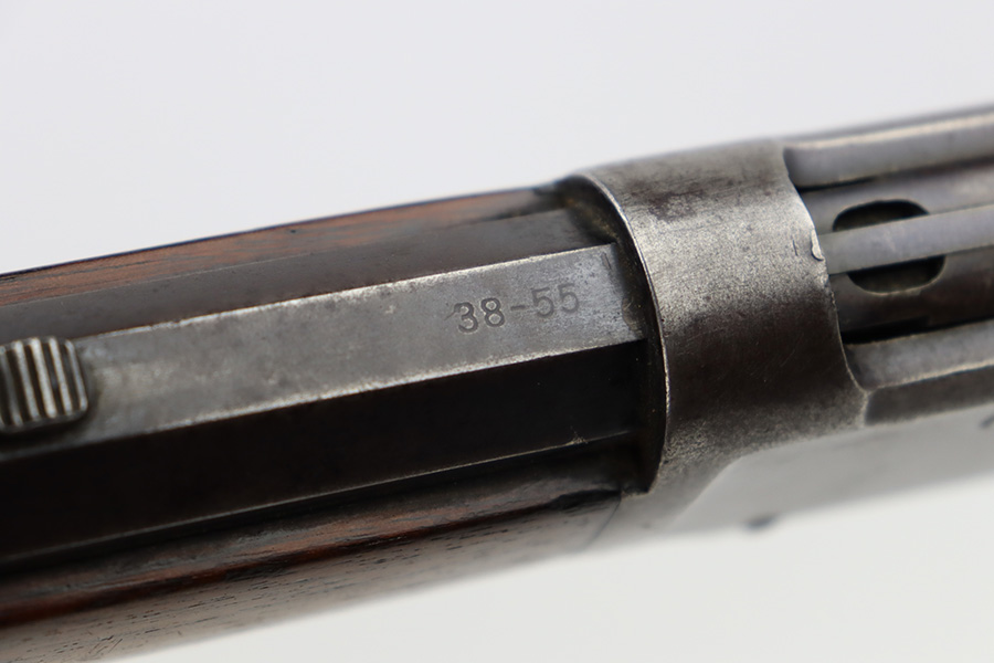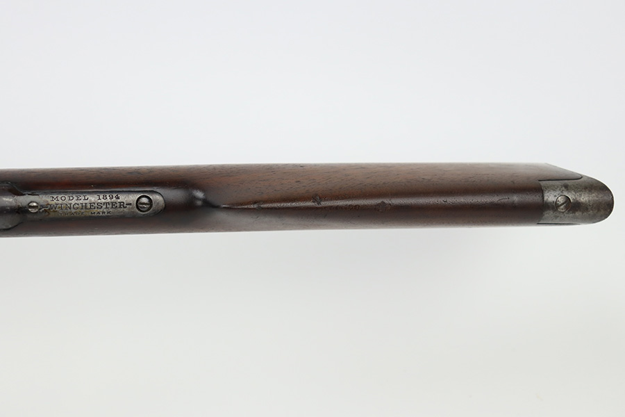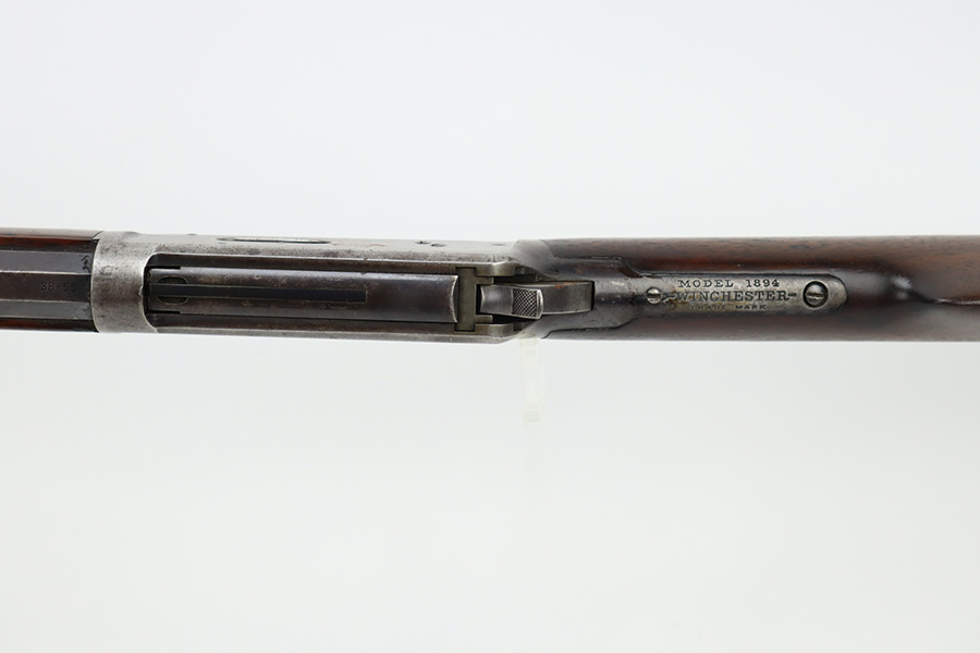 1/16/24 – This is a nice example of a Winchester Model 1894, manufactured in 1902 and chambered in .38-55 WCF. Its original finish rates roughly 70% with general high edge wear and thinning on the receiver. There is very light spotty oxidation throughout. Excellent wood furniture for its age. The rifling in the bore is fairly worn with pitting throughout.