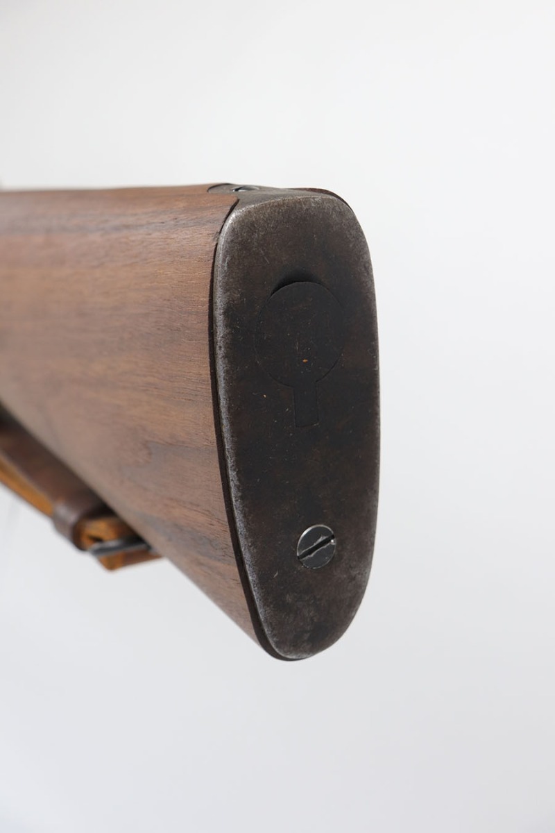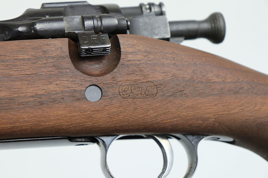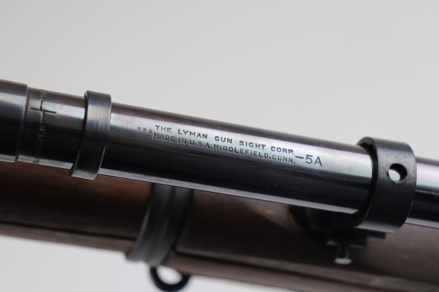 7/14/20 – This is a 1918 manufactured Springfield model 1903. Features a double heat-treated receiver and a vintage Lyman 5A (successor to the Winchester A 5) scope with a power booster installed for increased magnification. The scope, receiver, and barrel have been refinished to a dark shiny bluing that remains excellent. The reticle is an aperture sight (open circle on twisted wire post) for greater accuracy. The bore has some light patina / signs of residue within the grooves, but very strong and deep rifling. The stock is excellent and CMP stamped. Known as a C-Style stock from the CMP. No issues with the wood or functionality.