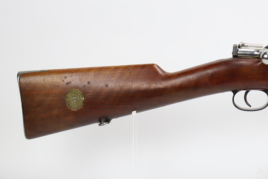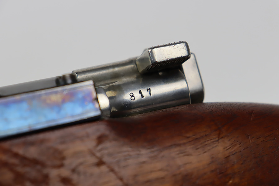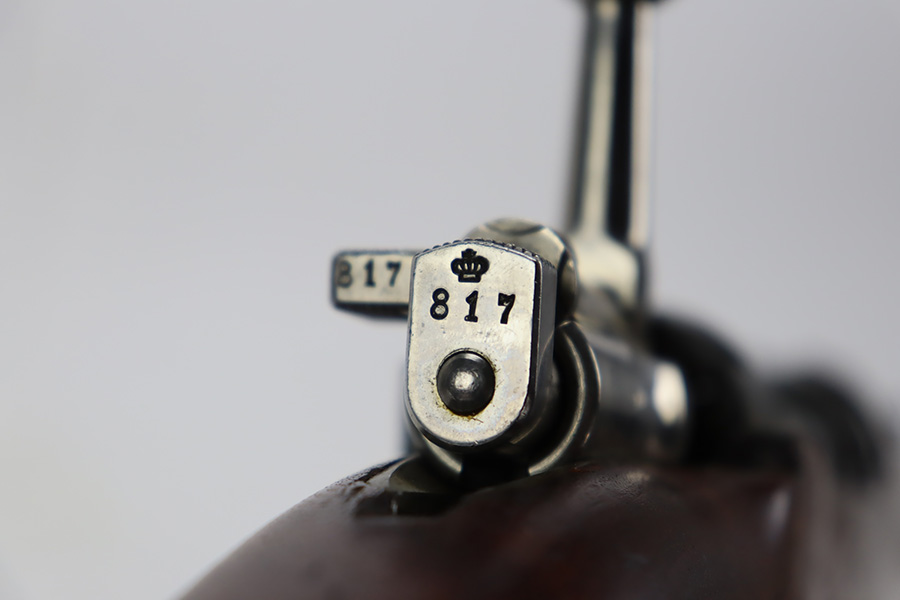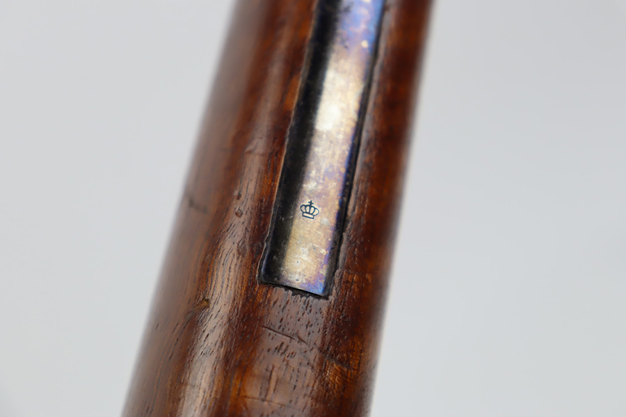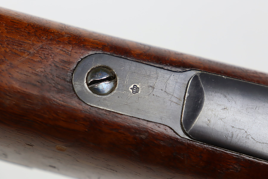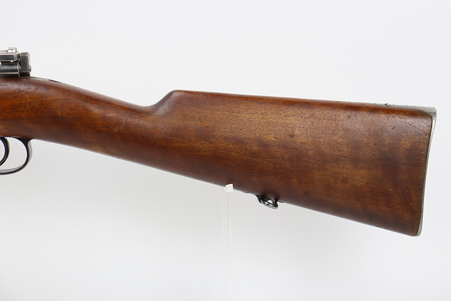 9/19/23 – This is a very nice example of a Swedish Mauser Model 1896 manufactured in 1905. The Model 1896 rifle in 6.5×55mm was adopted in 1896 for infantry use, replacing the Model 1867–1889 Remington rolling block rifle in 8×58mmR Danish Krag. Swedish production started in 1898 at Carl Gustafs, but additional rifles were produced by Mauser during 1899 and 1900 because of delays in shipping additional production machinery from Germany to Sweden. This one is all matching except for the rear sight. Import mark on the barrel. The metal parts have retained about 95% of their finish with minor high edge wear and some light scratches here and there, most noticeable on the floor plate/trigger group. The wood furniture is nice but shows minor bruising and scratching throughout. Mint bore.