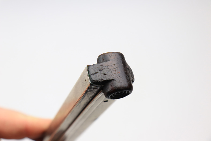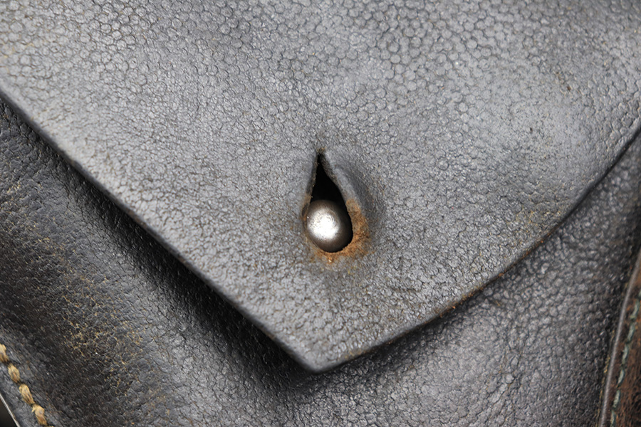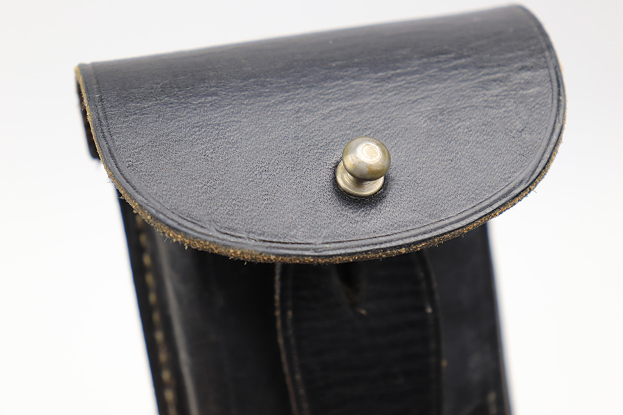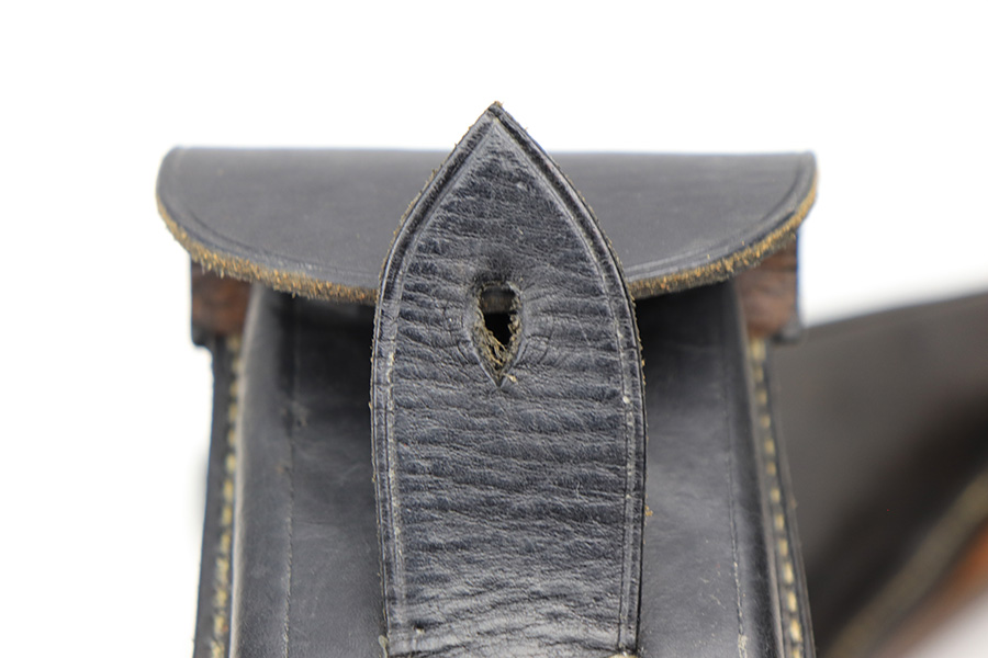 3/29/22 – This is an extremely rare grouping of WW1 Imperial Navy Luger accessories. The set is complete, including holster, shoulder board, shoulder straps, 2 spare magazines with magazine pouch, cleaning rod, and Imperial Navy proofed Luger tool. The holster is maker stamped and dated on the interior leather with crisp markings. The pebble grain leather is original and completely intact. The cleaning rod pouch has some replacement stitching as well as stitching that’s missing, but the rest of the stitching appears original and in tact. The shoulder straps are in great condition, as is the magazine pouch which features uneven stitching on the back (a known feature for navy mag pouches). The two magazines included are both original, functional WW1 Navy luger magazines with concentric circles. The shoulder stock is property stamped and Navy proof stamped. The wood is in great condition with a serial numbered “4216” metal end. Also includes an original cleaning rod and Imperial Navy proofed luger tool. A great grouping for any WW1 collector.